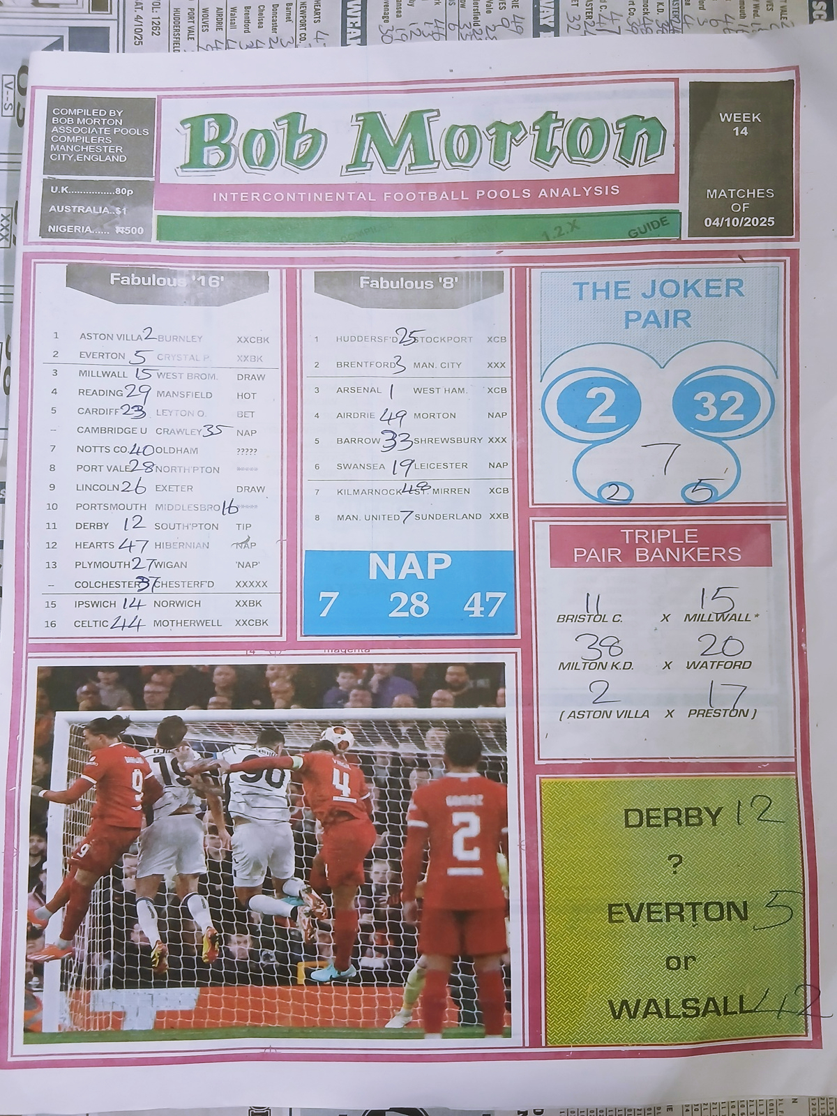 - Current Week 14 Pool Fixtures 2025 For Sat, Oct 4 - UK 2025/2026 Pools