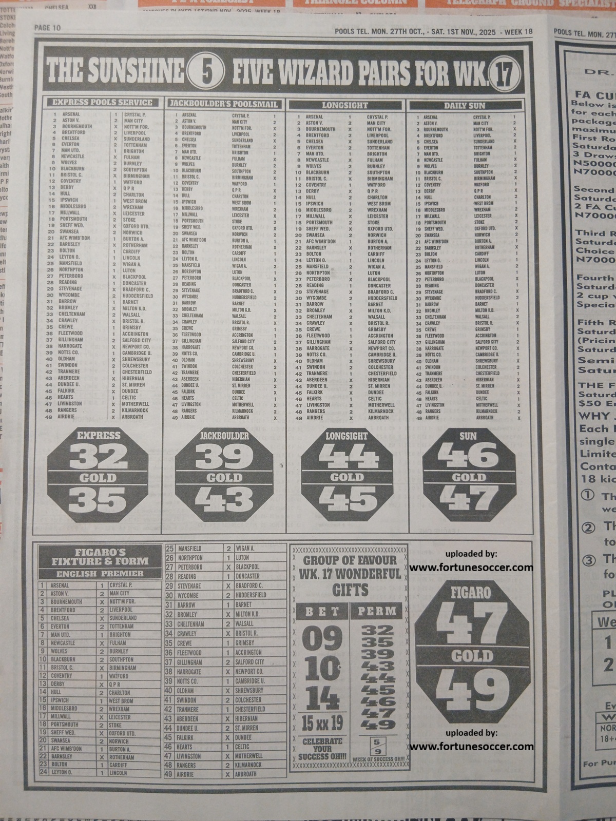 - Current Week 17 Pool Fixtures 2025 For Sat, Oct 25 - UK 2025/2026 Pools
