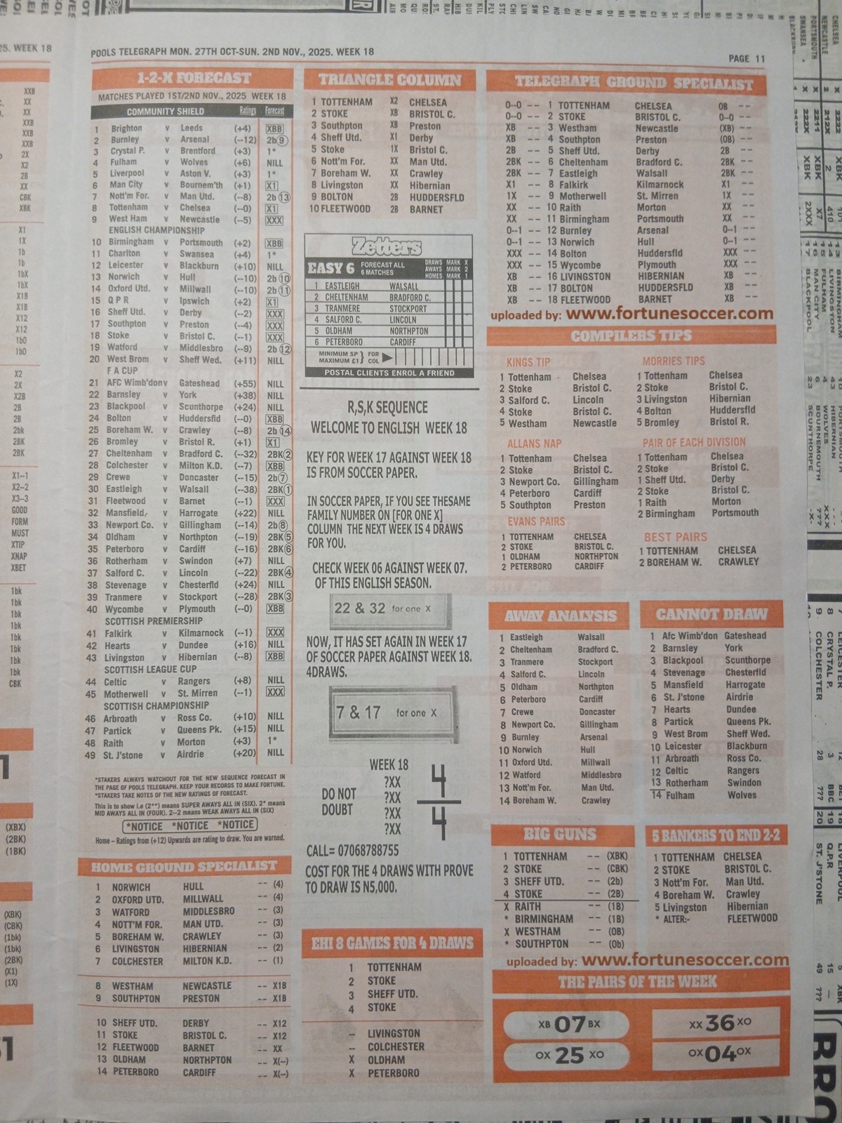 - Current Week 18 Pool Fixtures 2025 For Sat, 1 Nov - UK 2025/2026 Pools