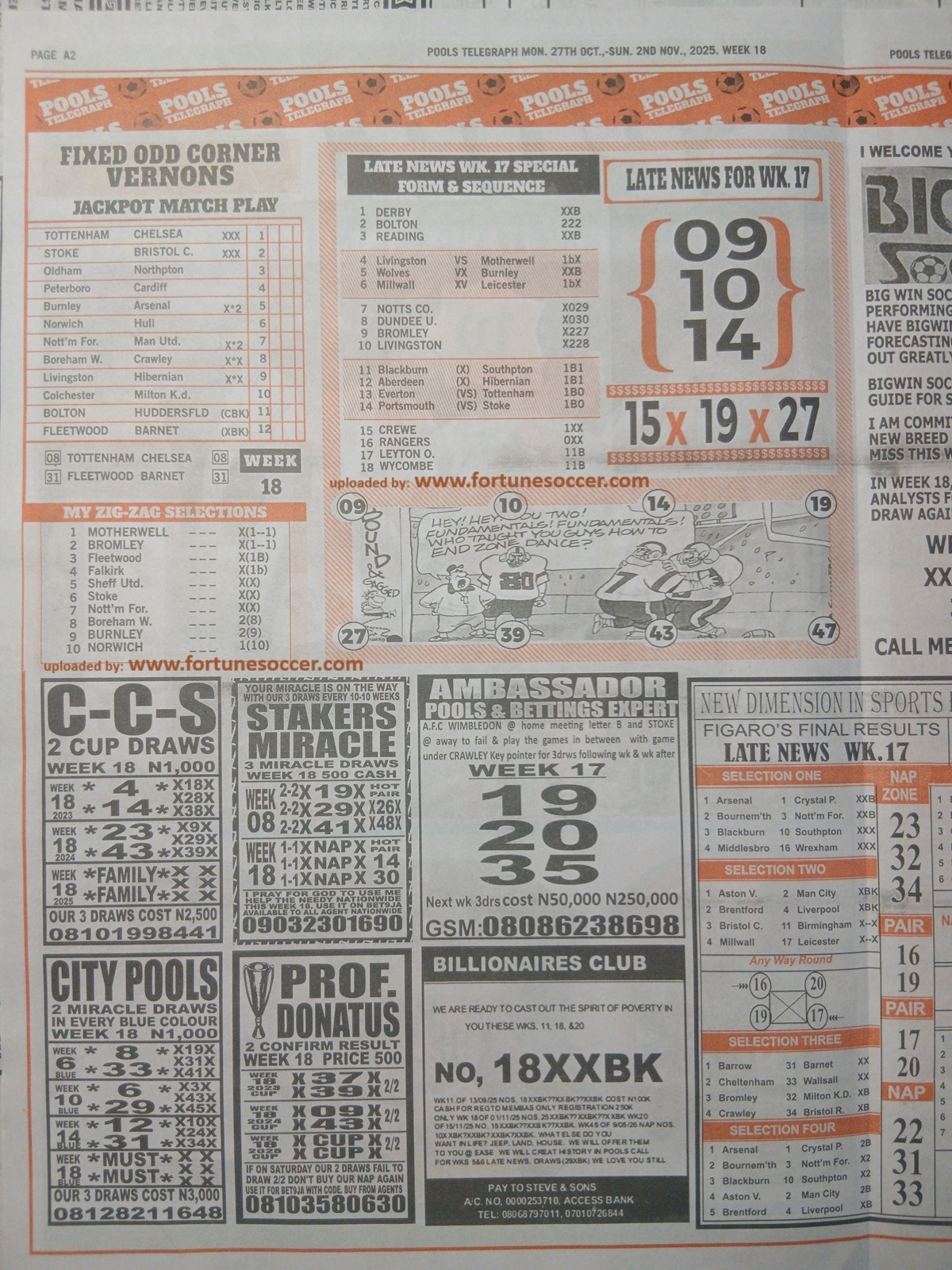 Week 18 Pool Late News Papers 2025: In the business of football pools, Pool Late News Papers — popularly known as CBK Papers — have become a trusted and powerful tool for every serious punter. These publications are released towards the end of the week, carrying fresh updates, banker confirmations, and last-minute corrections that make them one of the most reliable forecasting resources. When it comes to late news pool papers, punters know their value in transforming ordinary predictions into winning strategies.