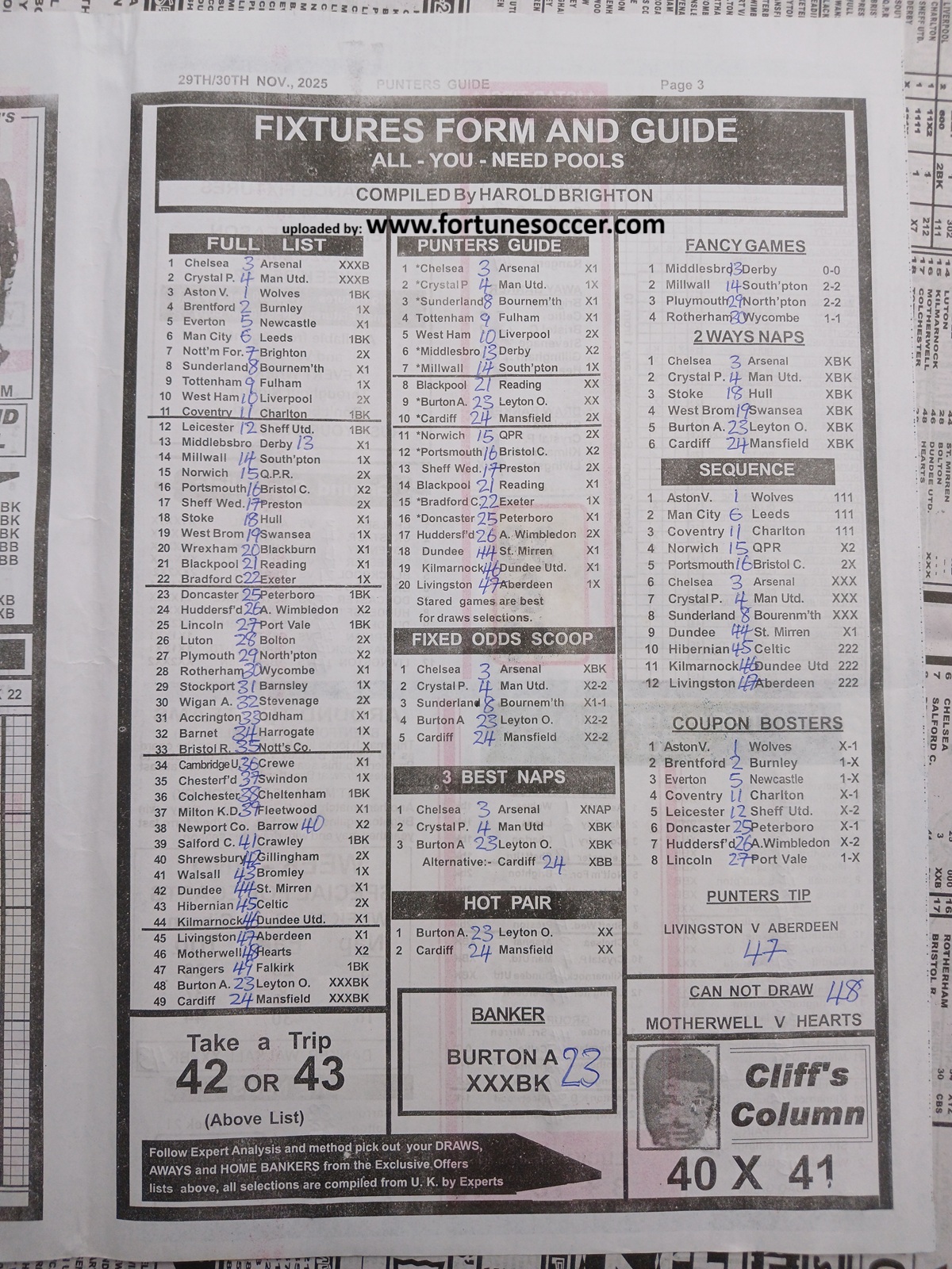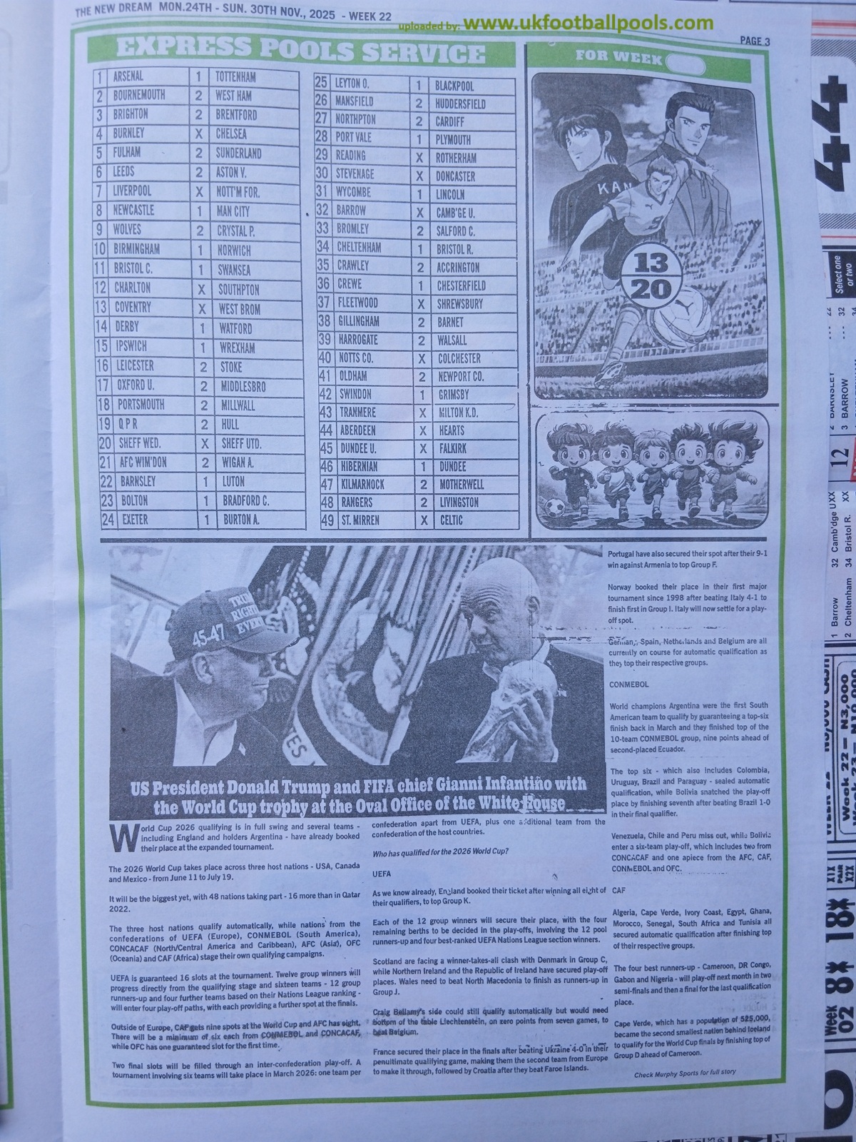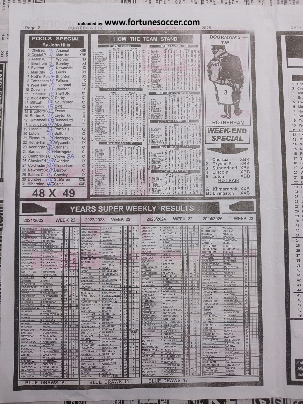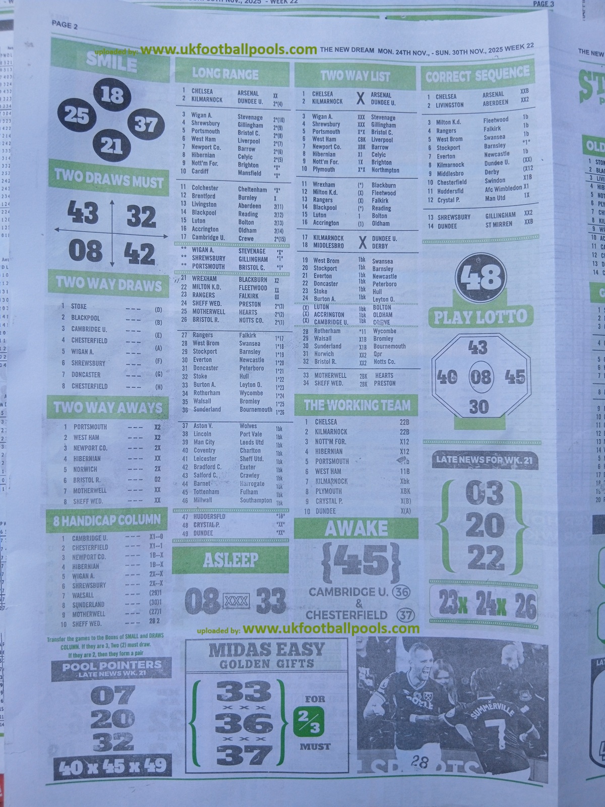 Week 22 Pool Late News Papers for matches scheduled on Saturday, 29 Nov 2025, in the UK 2025/2026 season.