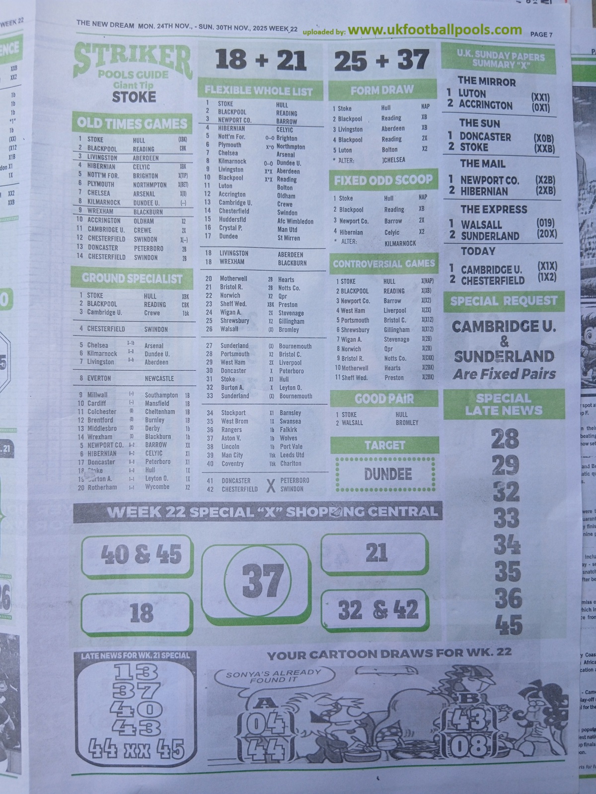- Current Week 21 Pool Fixtures 2025 For Sat, 22 Nov - UK 2025/2026 Pools