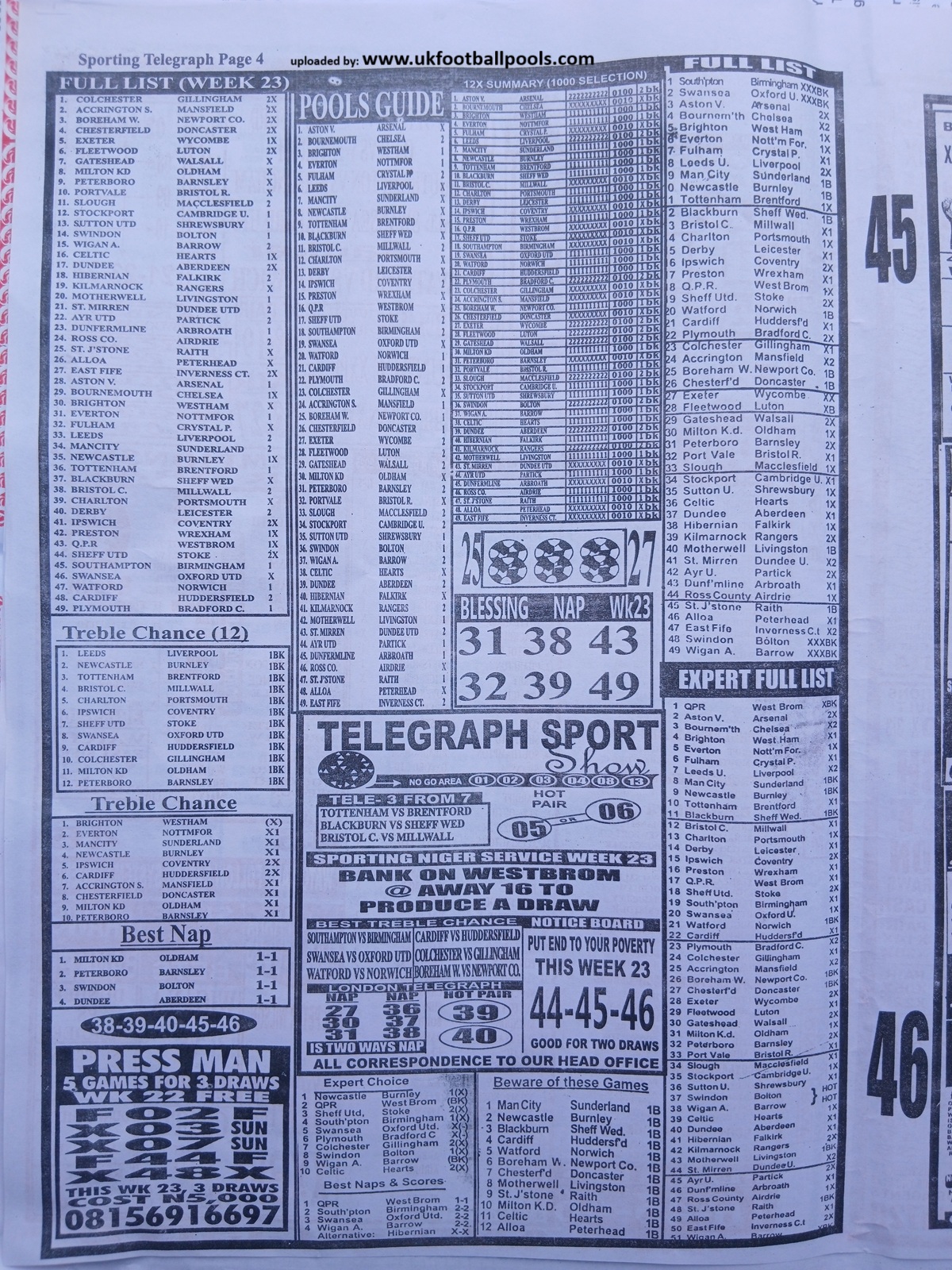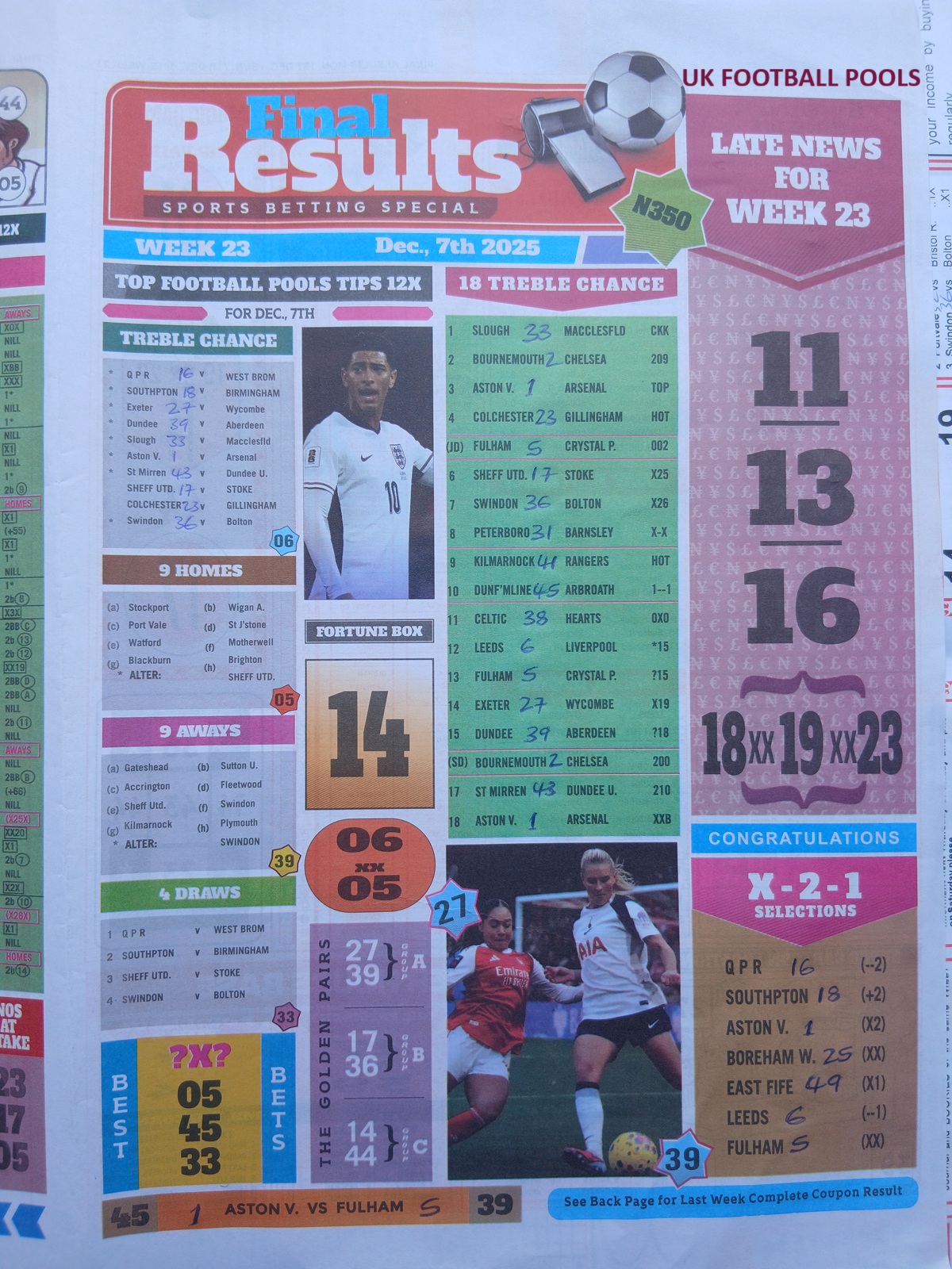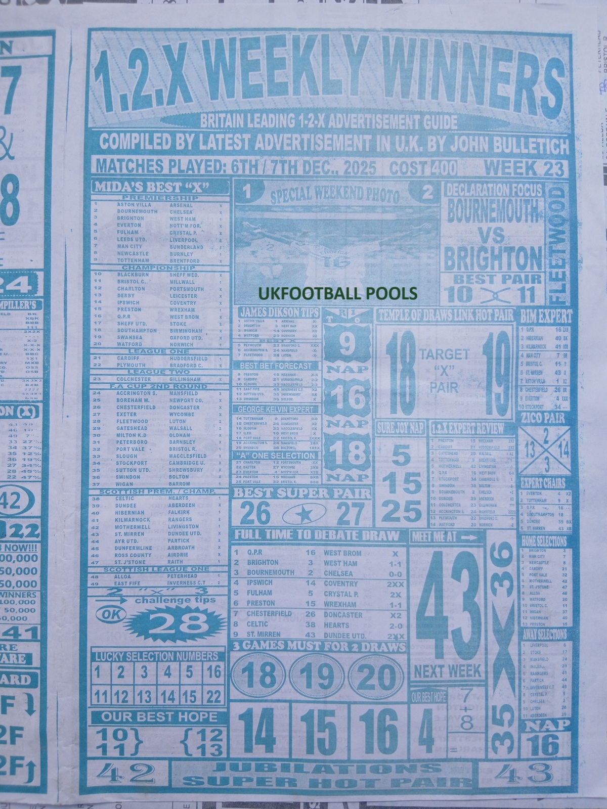 - Current Week 23 Pool Results 2025 For Sat, Dec 06 - UK 2025/2026 Pools