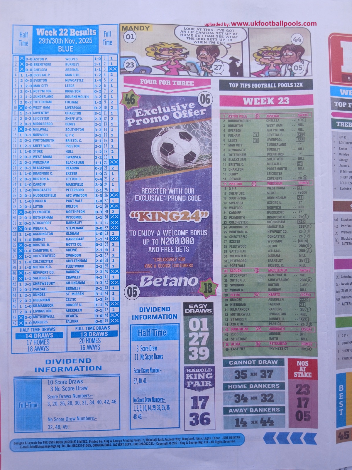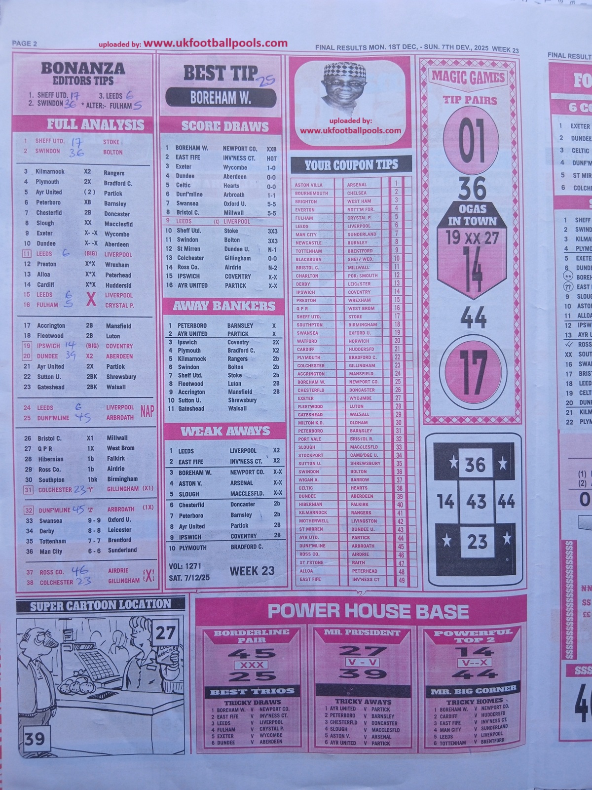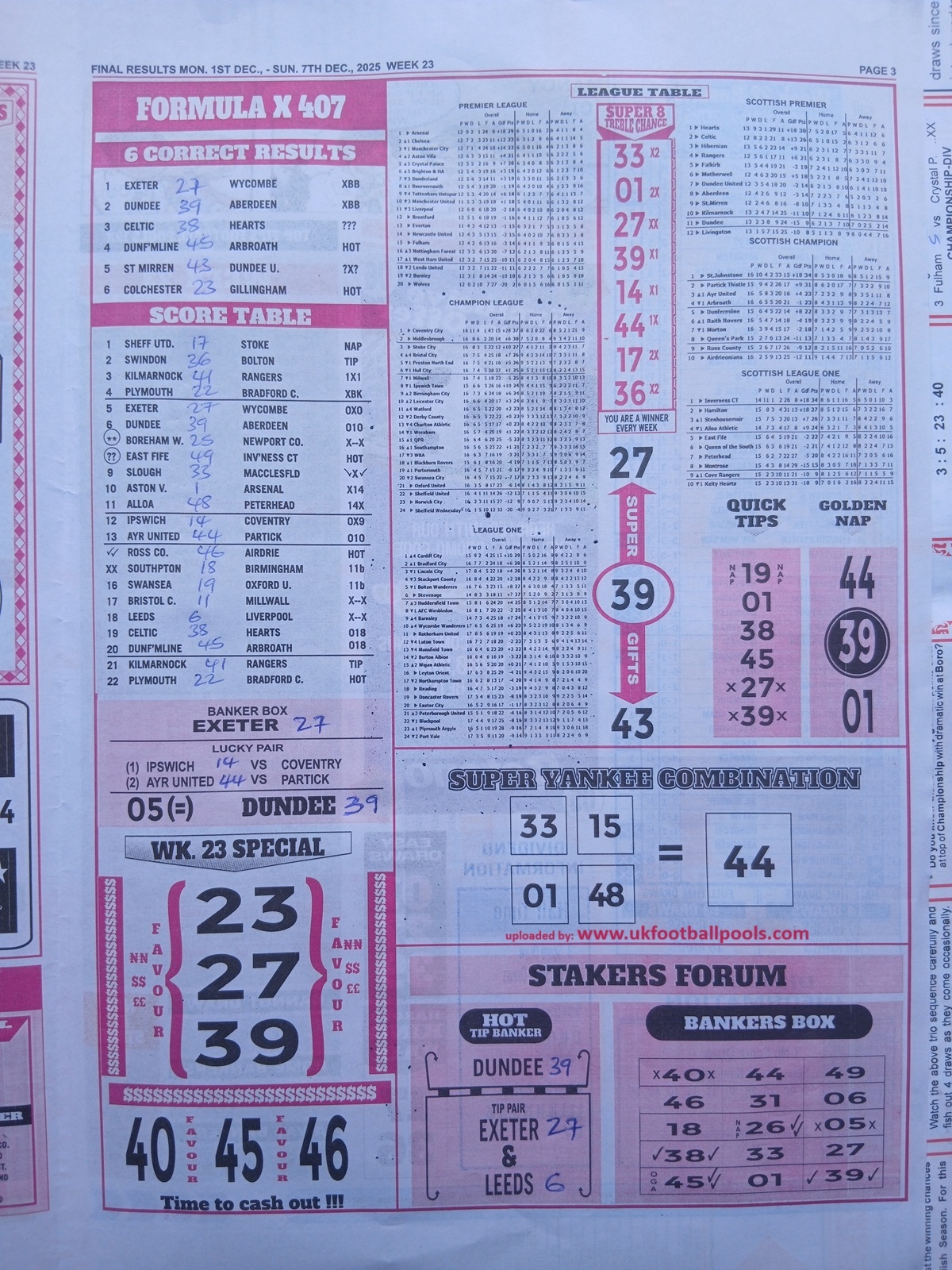 - Current Week 23 Pool Results for Sat, Dec 7 2025 - UK 2024/2025 Pools