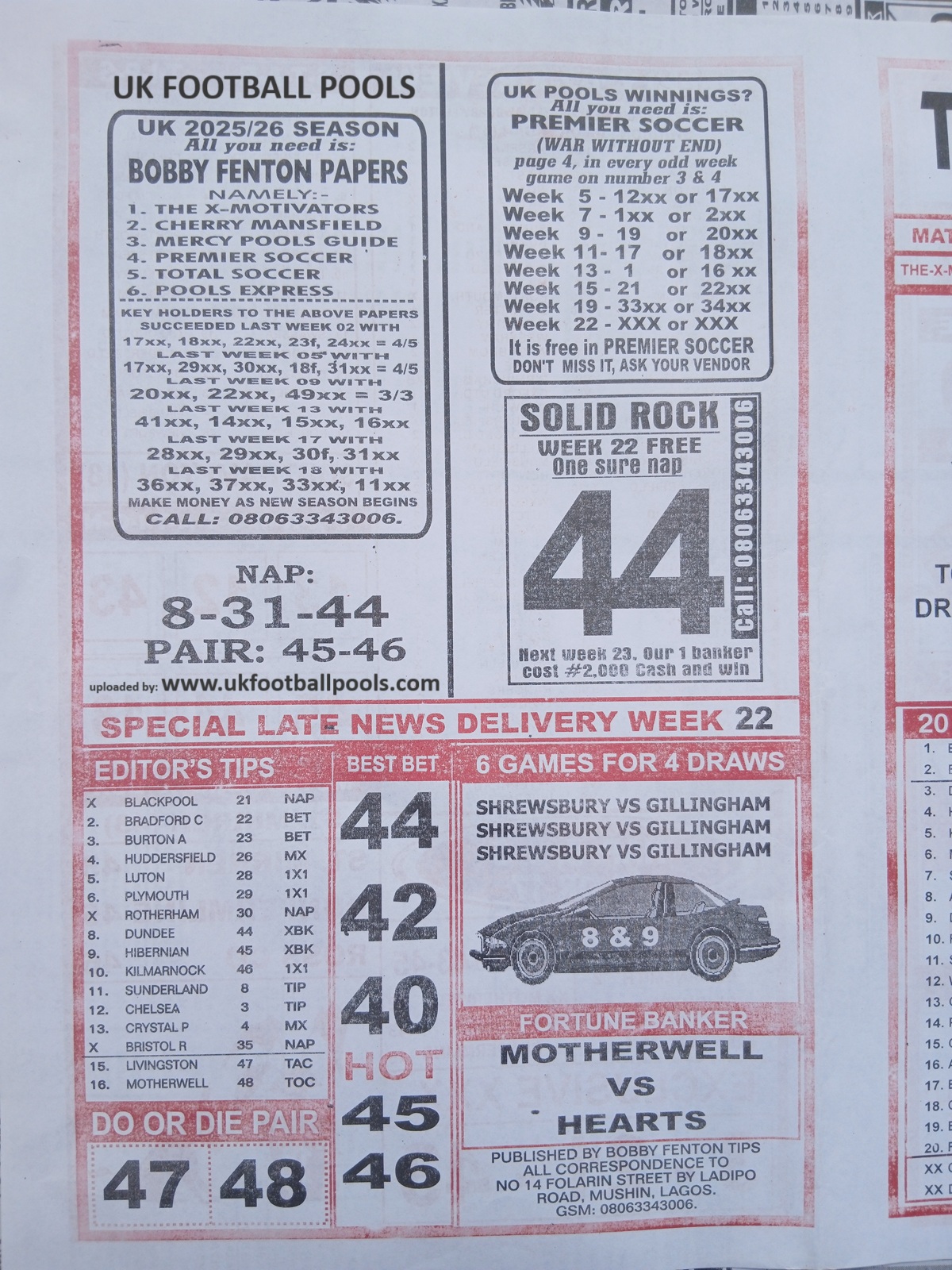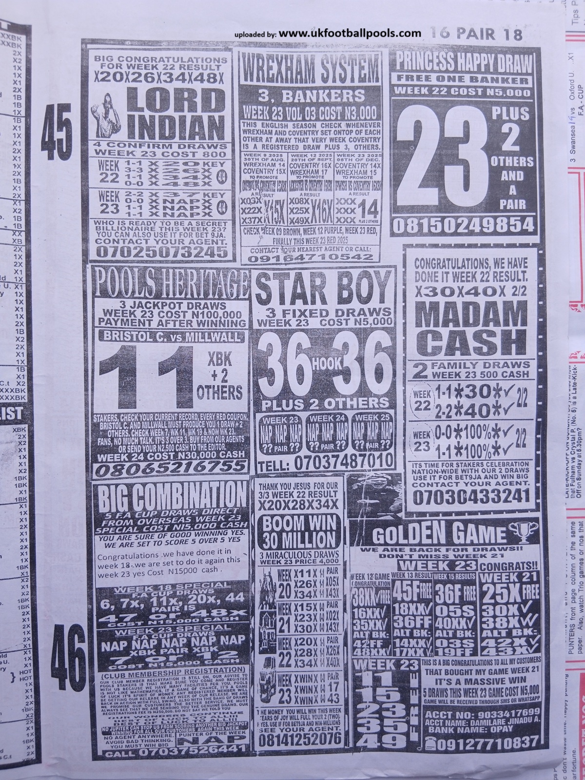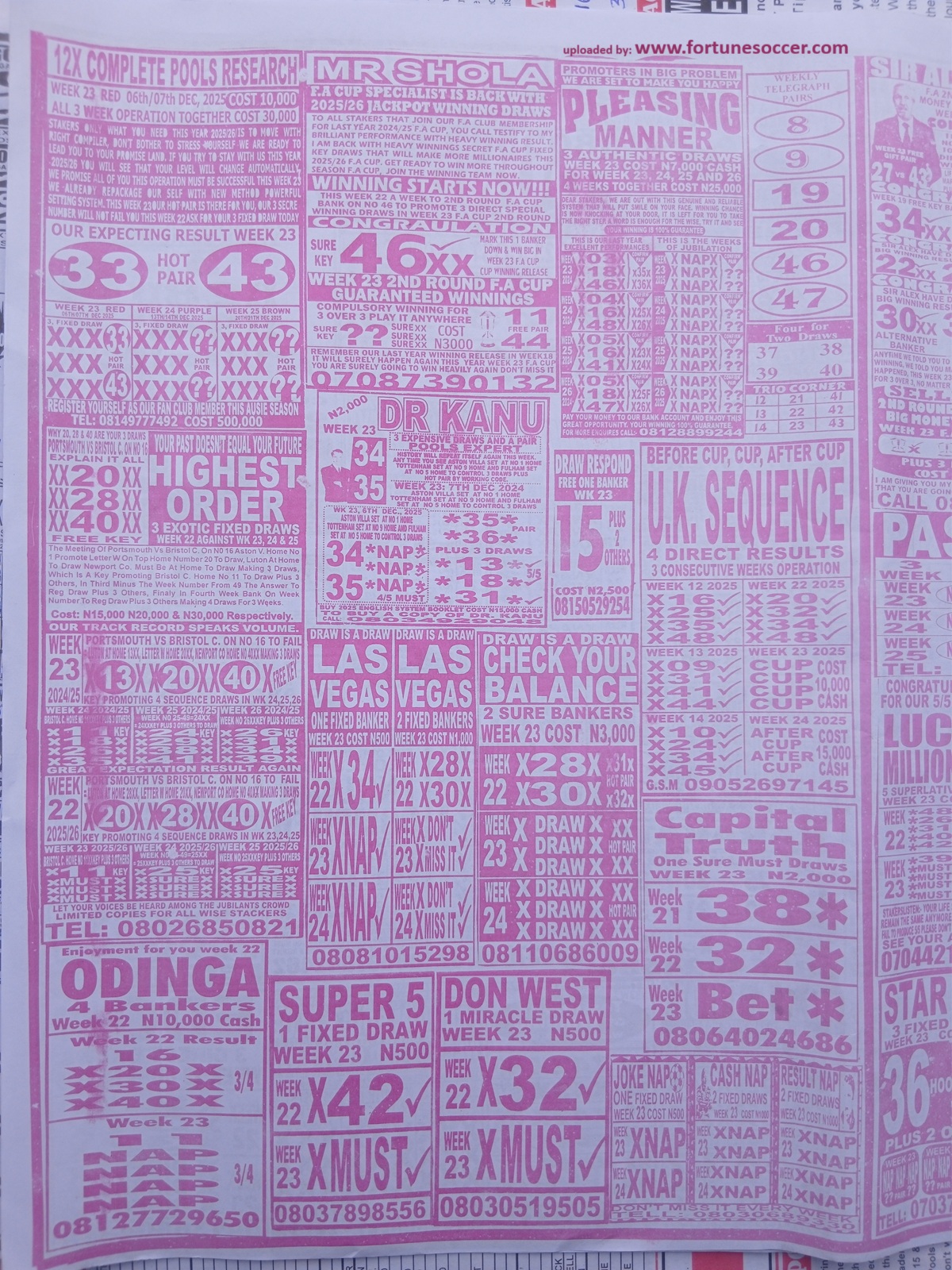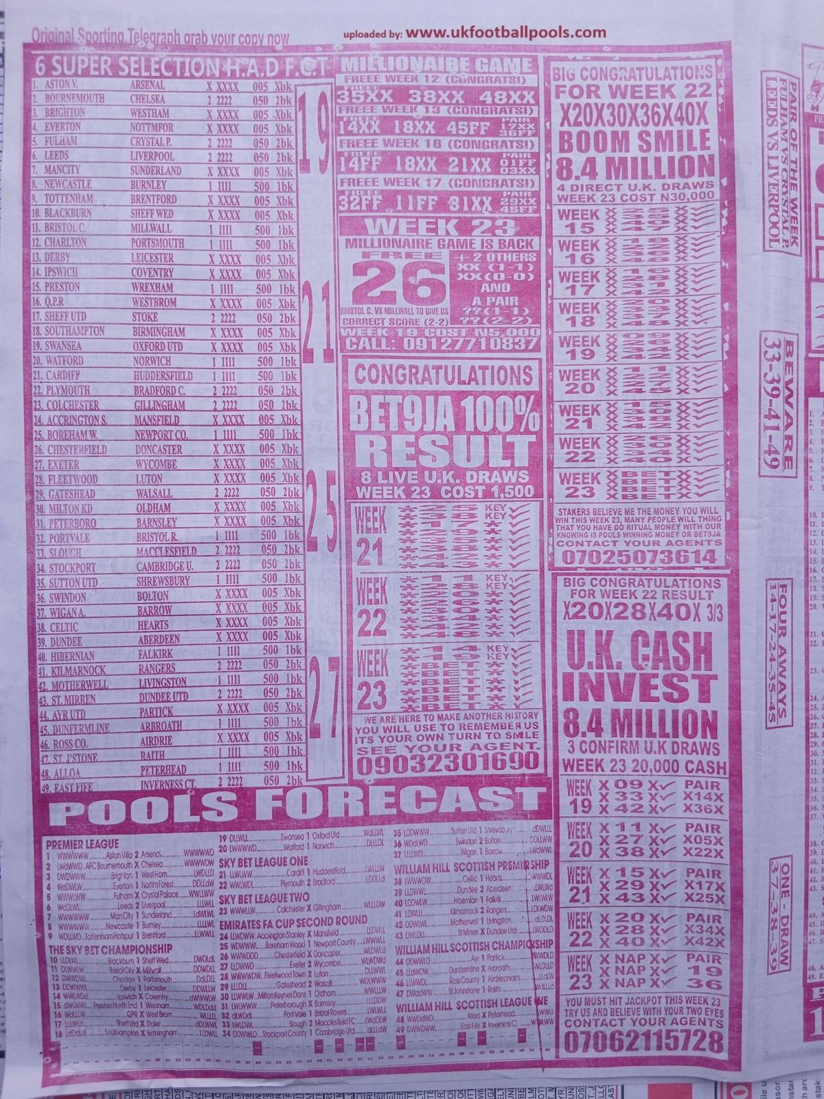 CHECK ASO: Current Week 23 Pool Late News Papers 2025: BigWin, Pools Telegraph, Temple Of Draws