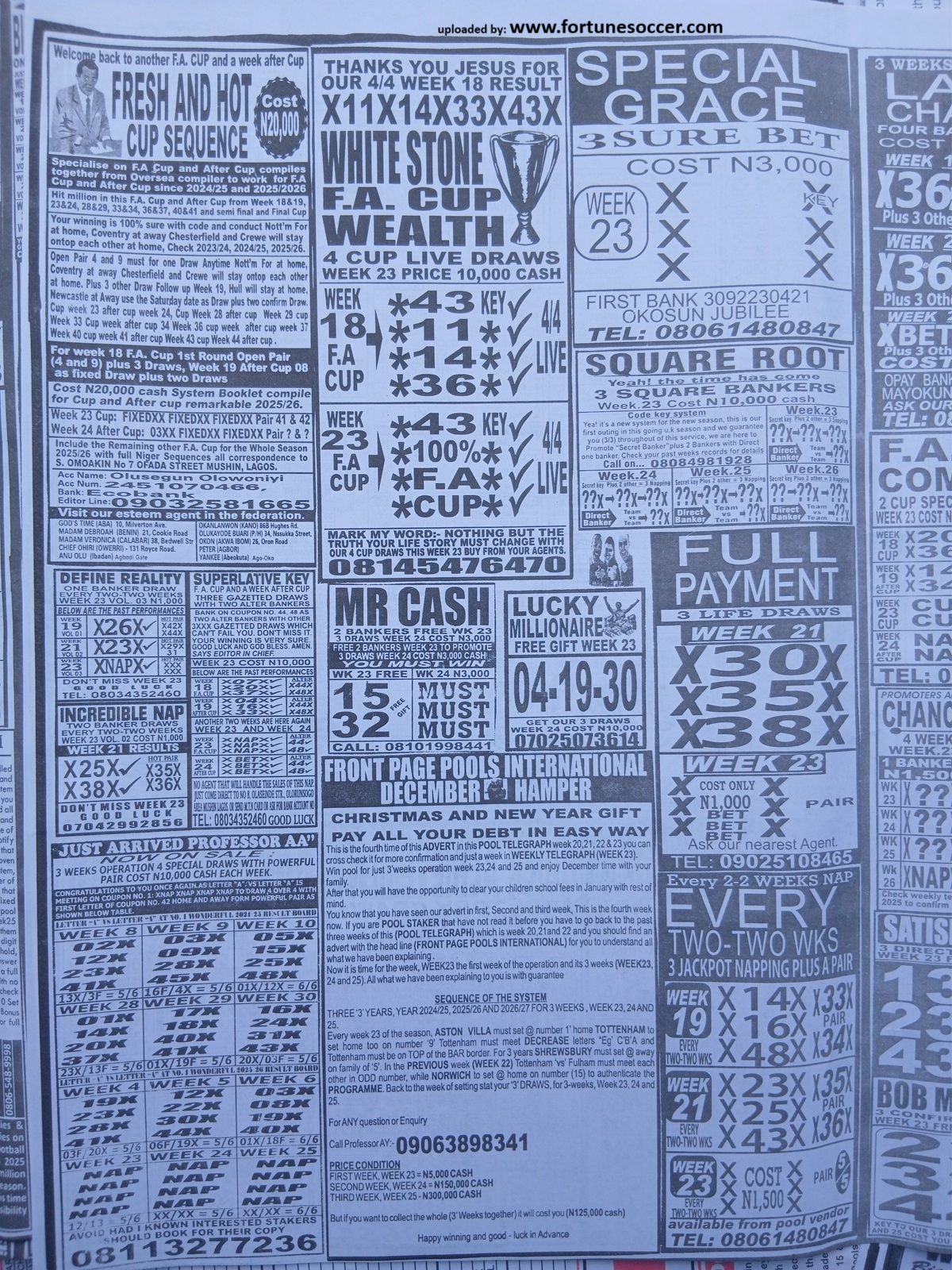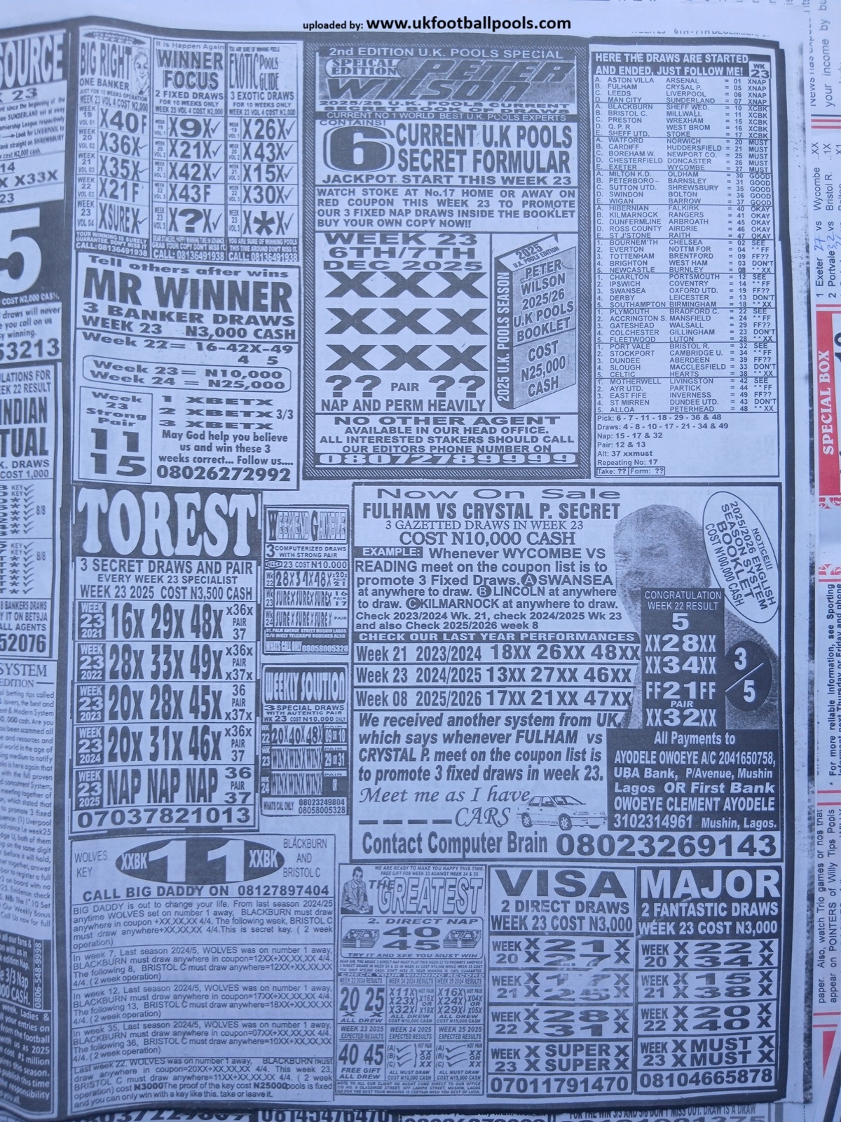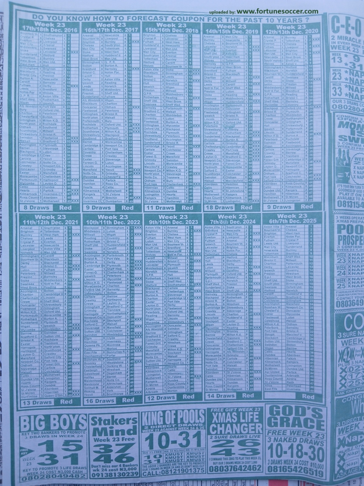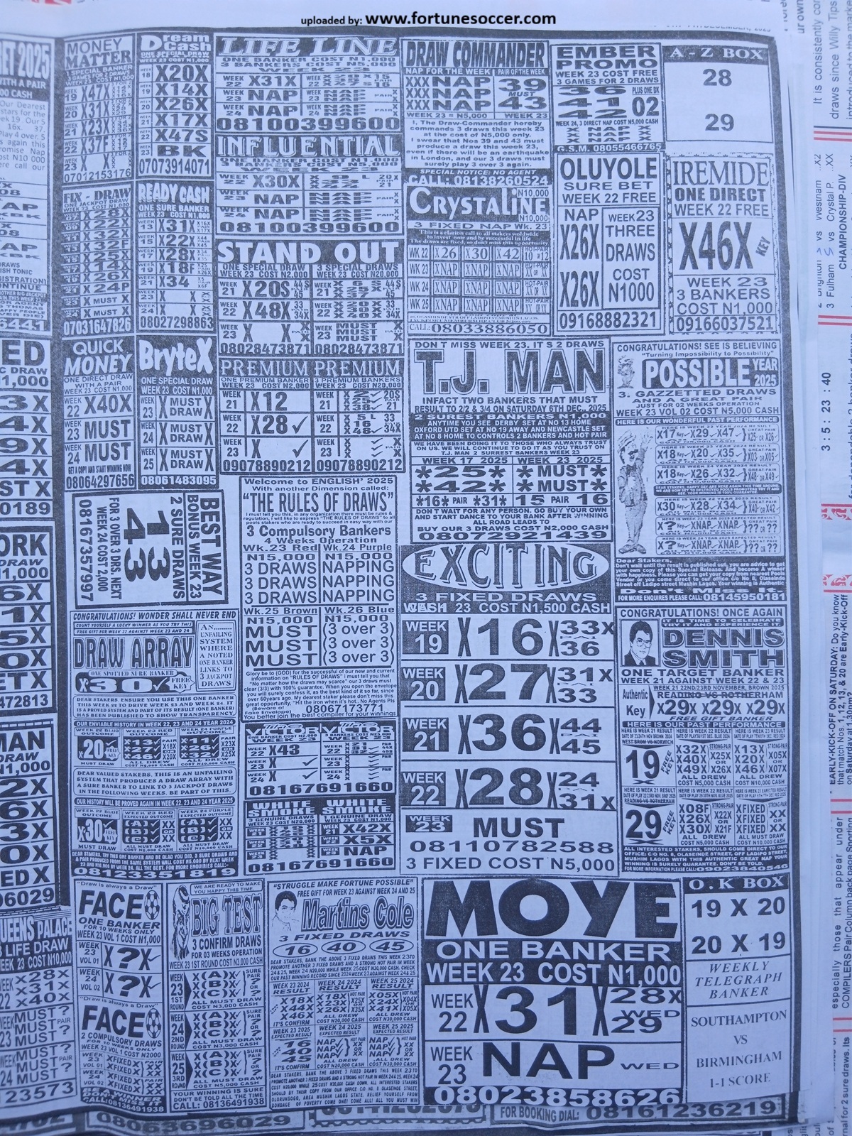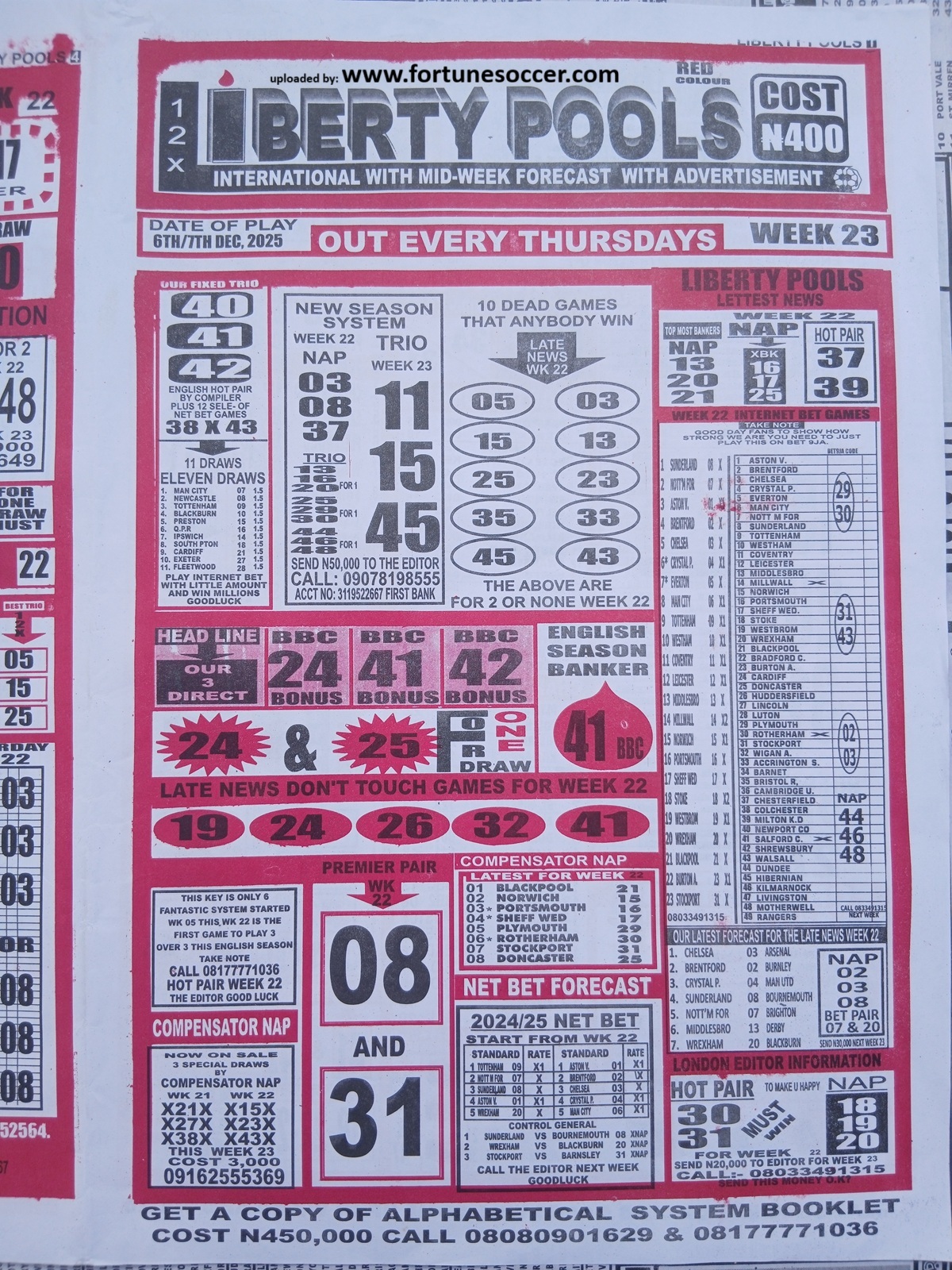 Week 23 Pool Late Newspapers 2025: pool punters — whether you’re a weekend hobbyist or a full-time compiler — know there’s a difference between guessing and forecasting. Week 23’s late newspapers remain one of the most reliable bridges between raw fixture results and high-probability betting lines. In this article, we will show what these late newspapers offer in terms of draw prediction, practical analysis, draws exposure, free weekly insights, best tips on banker draws, reliable winning lines, pairs and “cannot draw” candidates, potential draws, expert keys, and expert predictions.