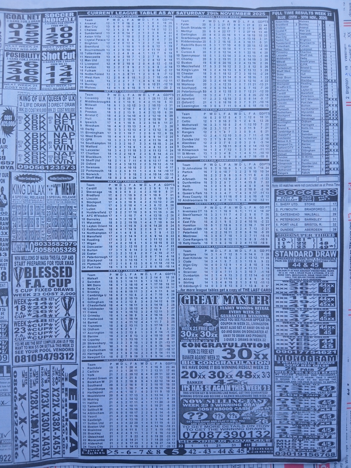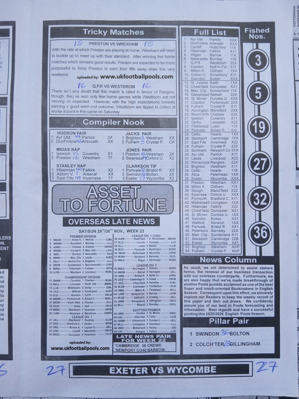 - Current Week 22 Pool Results 2025 For Sat, Nov 29 - UK 2025/2026 Pools