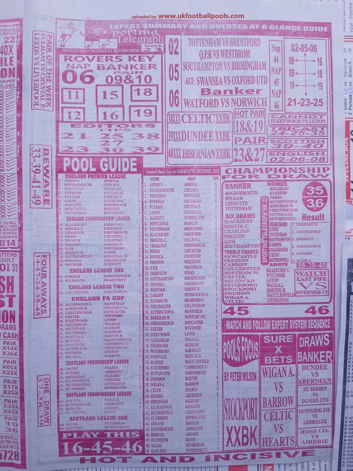 - How to use it: Use the Weekly Telegraph for quick validation. If both Soccer Standard and Weekly Telegraph point to the same banker, that’s a reliability multiplier. Conversely, if Telegraph flags a “cannot draw” that other papers like, reconsider that pick.