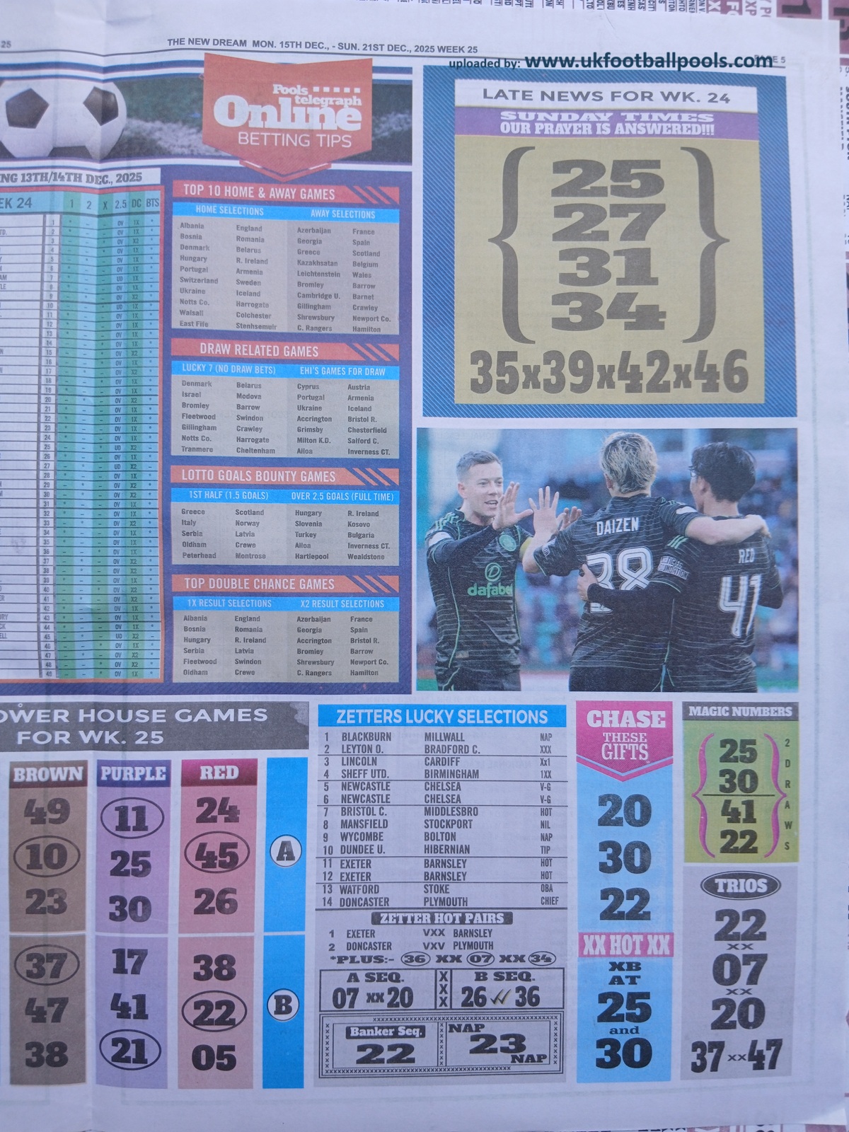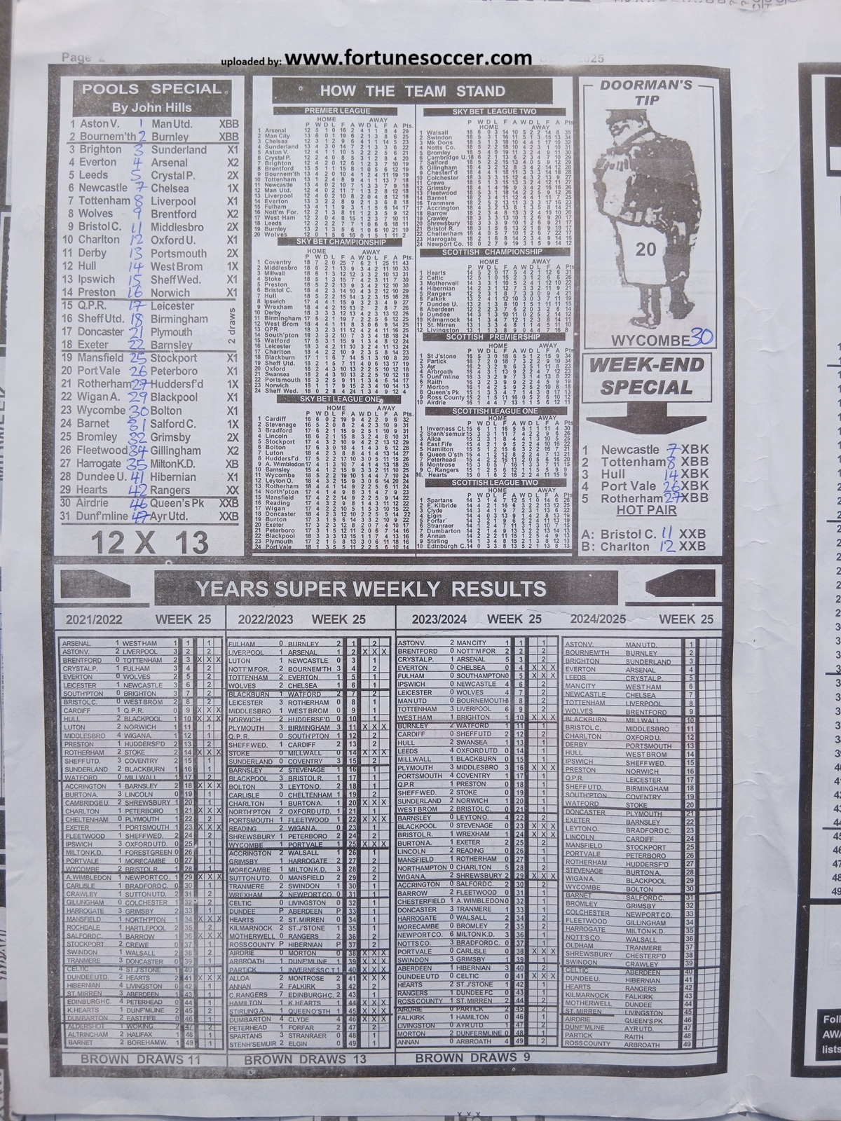 - Current Week 25 Pool Fixtures for Sat, Dec 21 2025 - UK 2024/2025 Pools