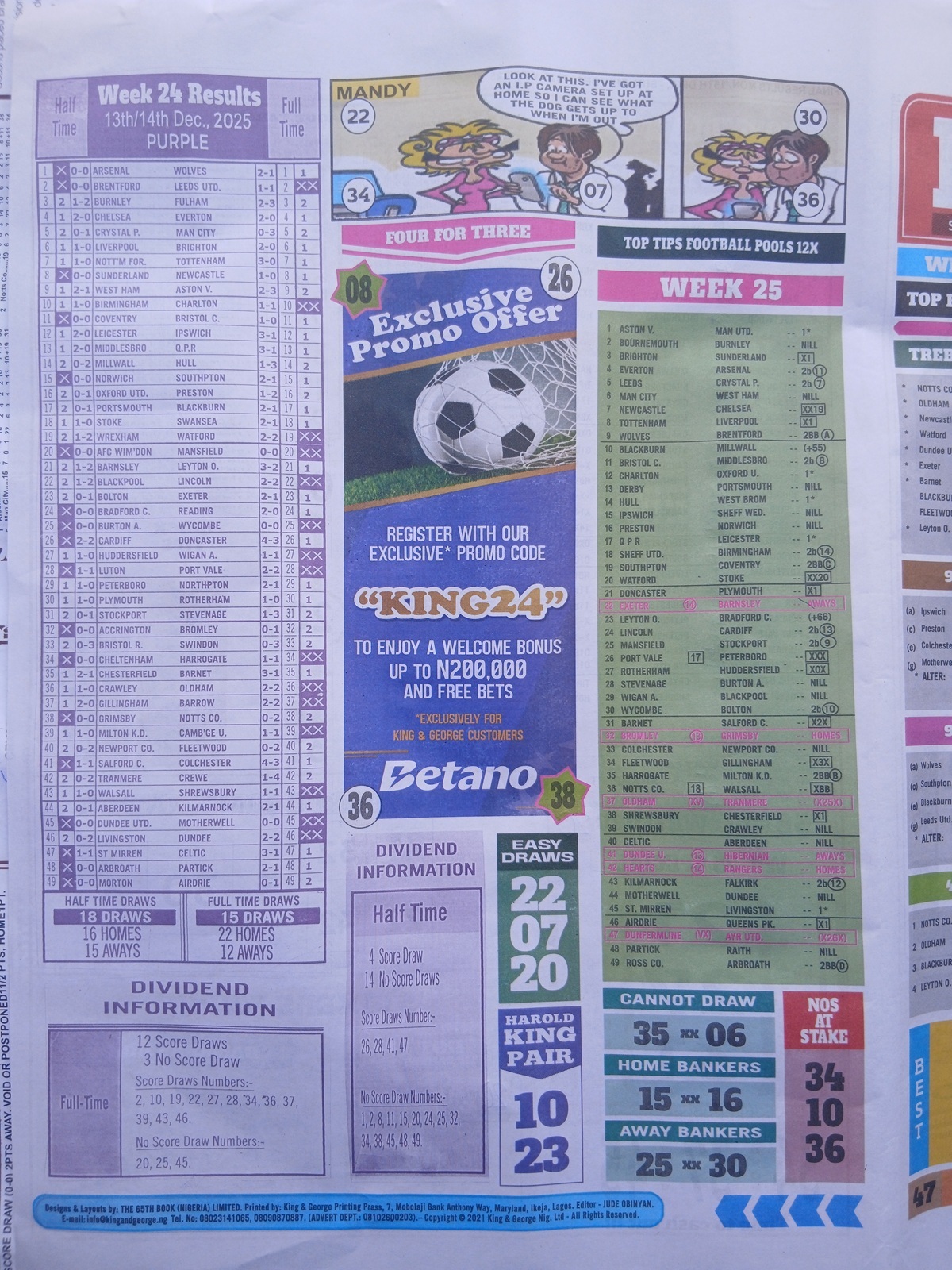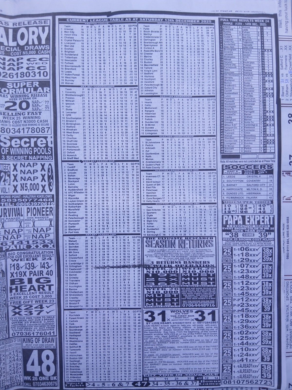 - Current Week 24 Pool Results 2025 For Sat, Dec 13 - UK 2025/2026 Pools