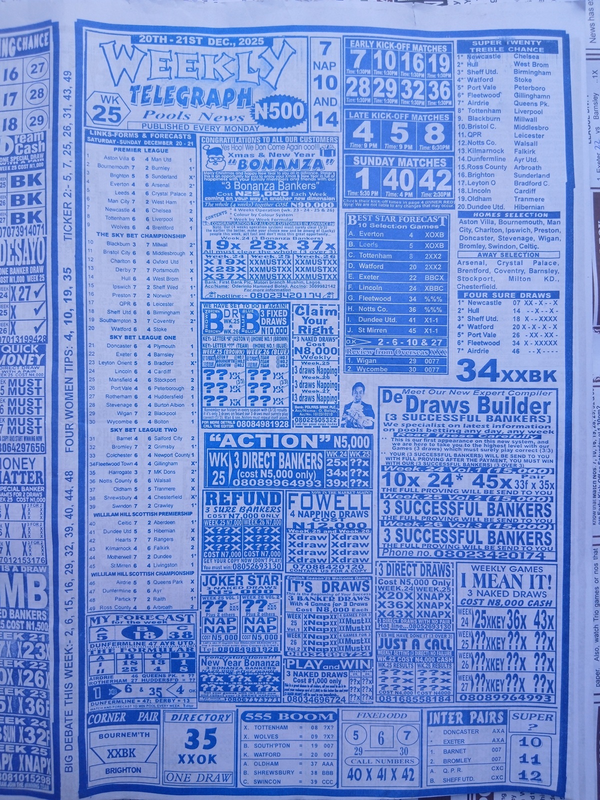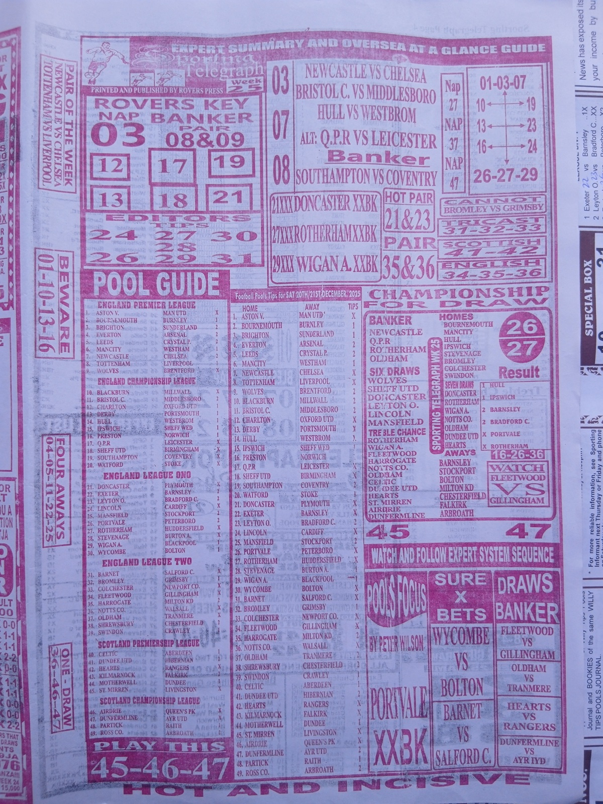 - How to use it: Use the Weekly Telegraph for quick validation. If both Soccer Standard and Weekly Telegraph point to the same banker, that’s a reliability multiplier. Conversely, if Telegraph flags a “cannot draw” that other papers like, reconsider that pick.