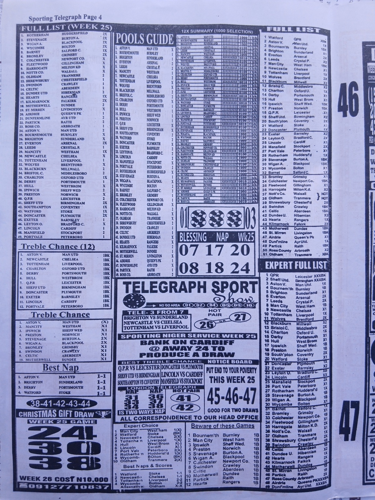 - Avoid overcrowded favorites: If Weekly Telegraph or Mirror shows a heavy public bias, avoid overplaying that line in multiple tickets.