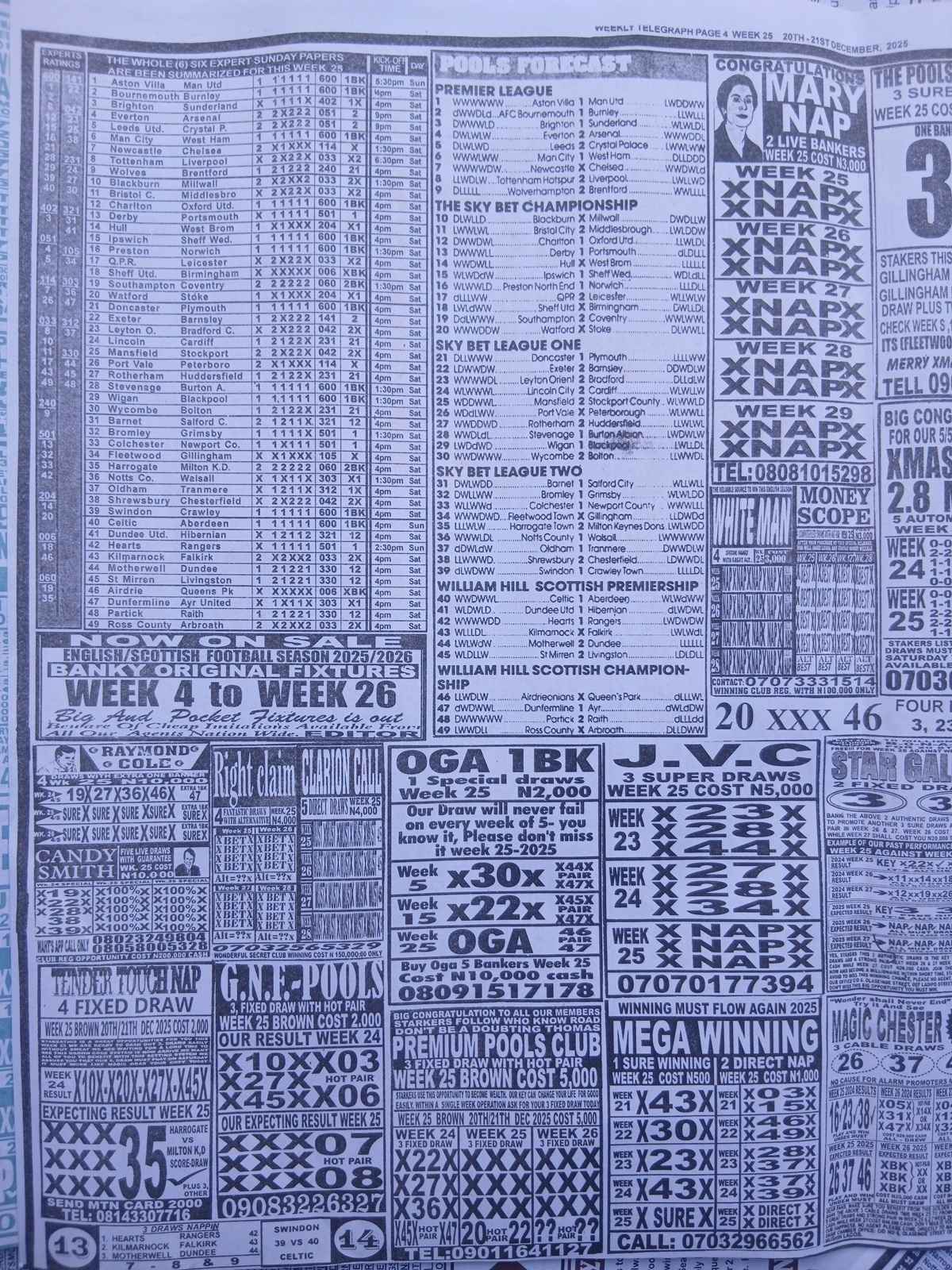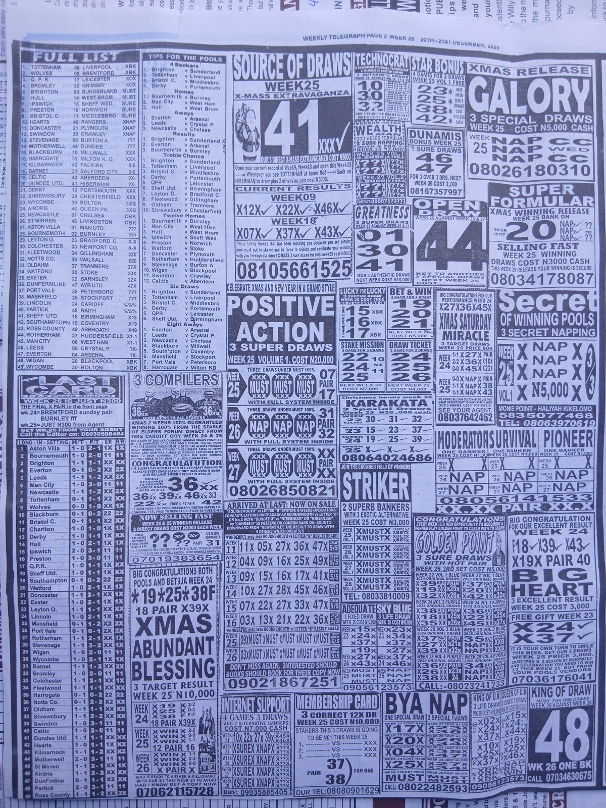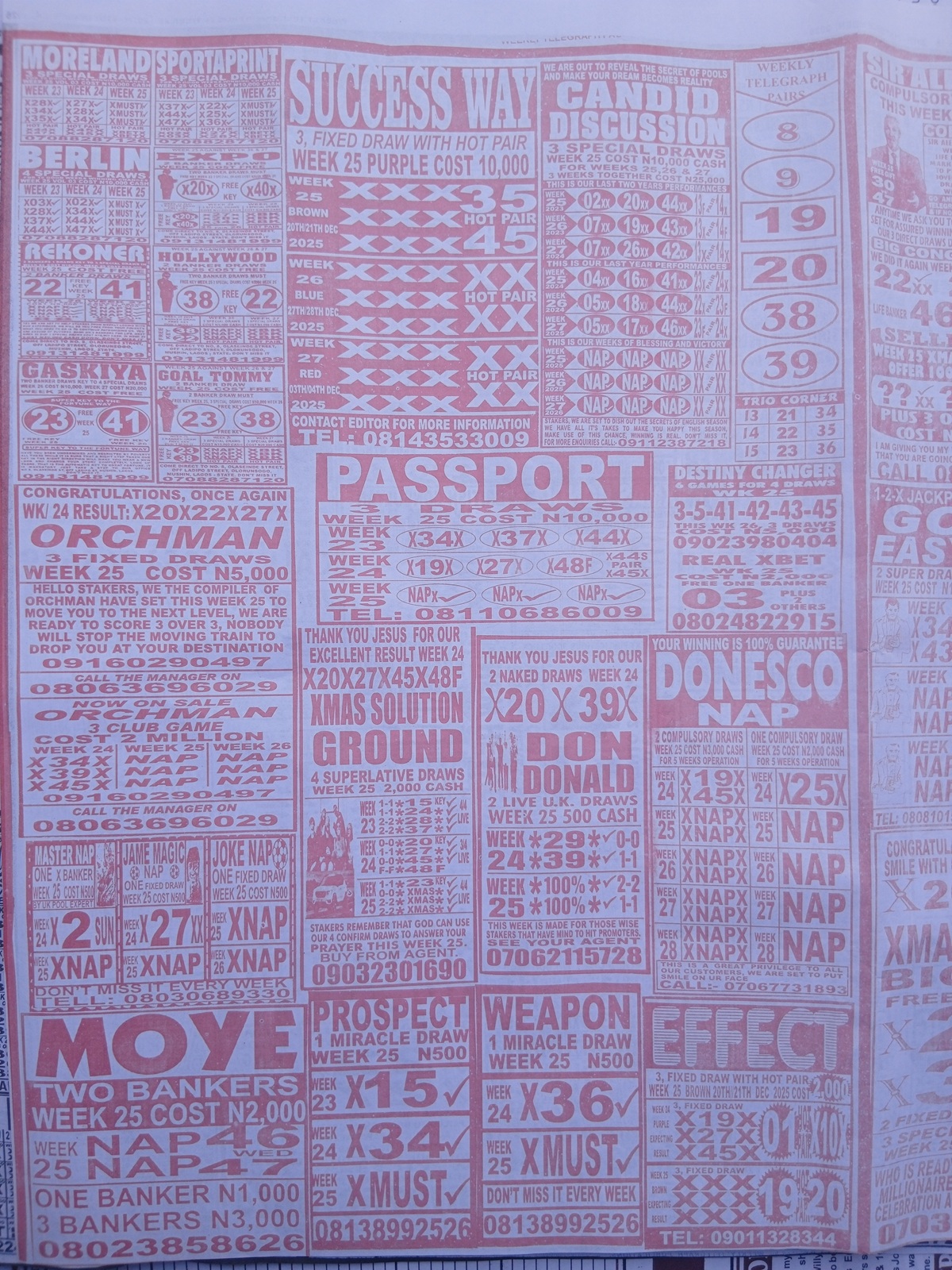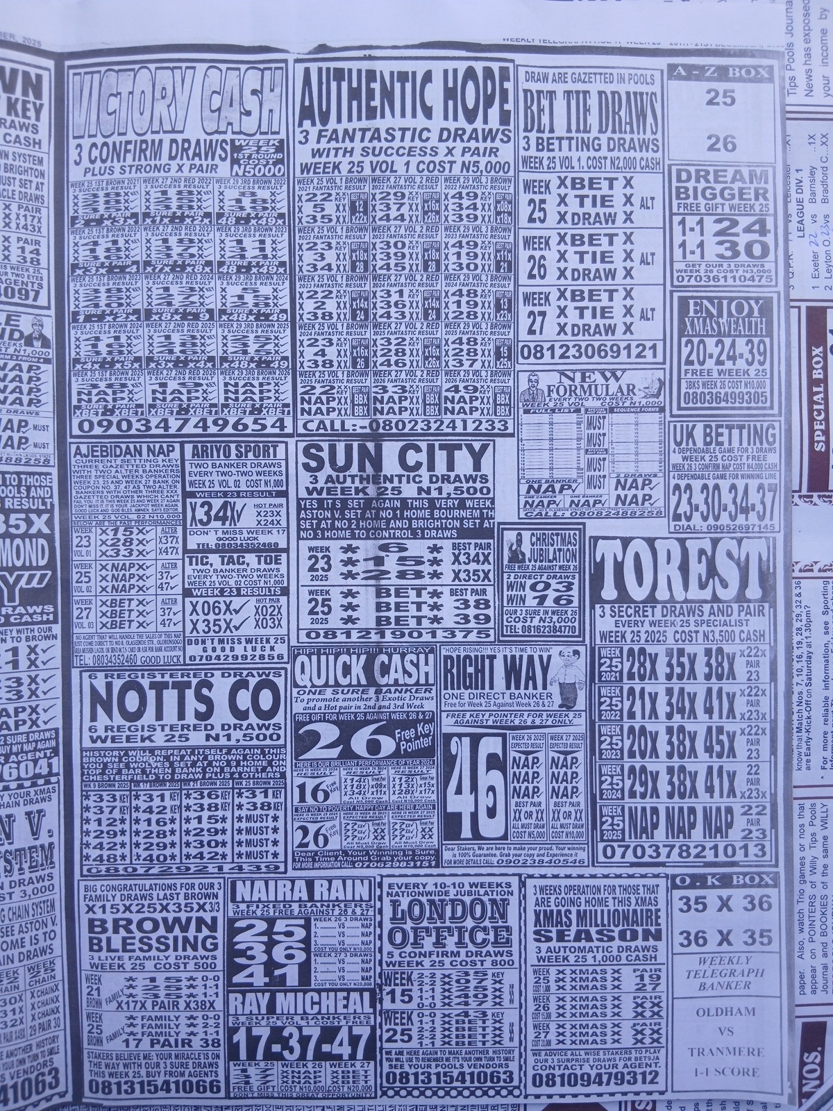CHECK ASO: Current Week 25 Pool Late News Papers 2025 ~ BigWin, Pools Telegraph, Temple Of Draws