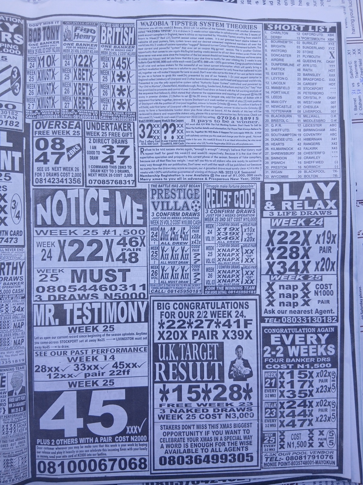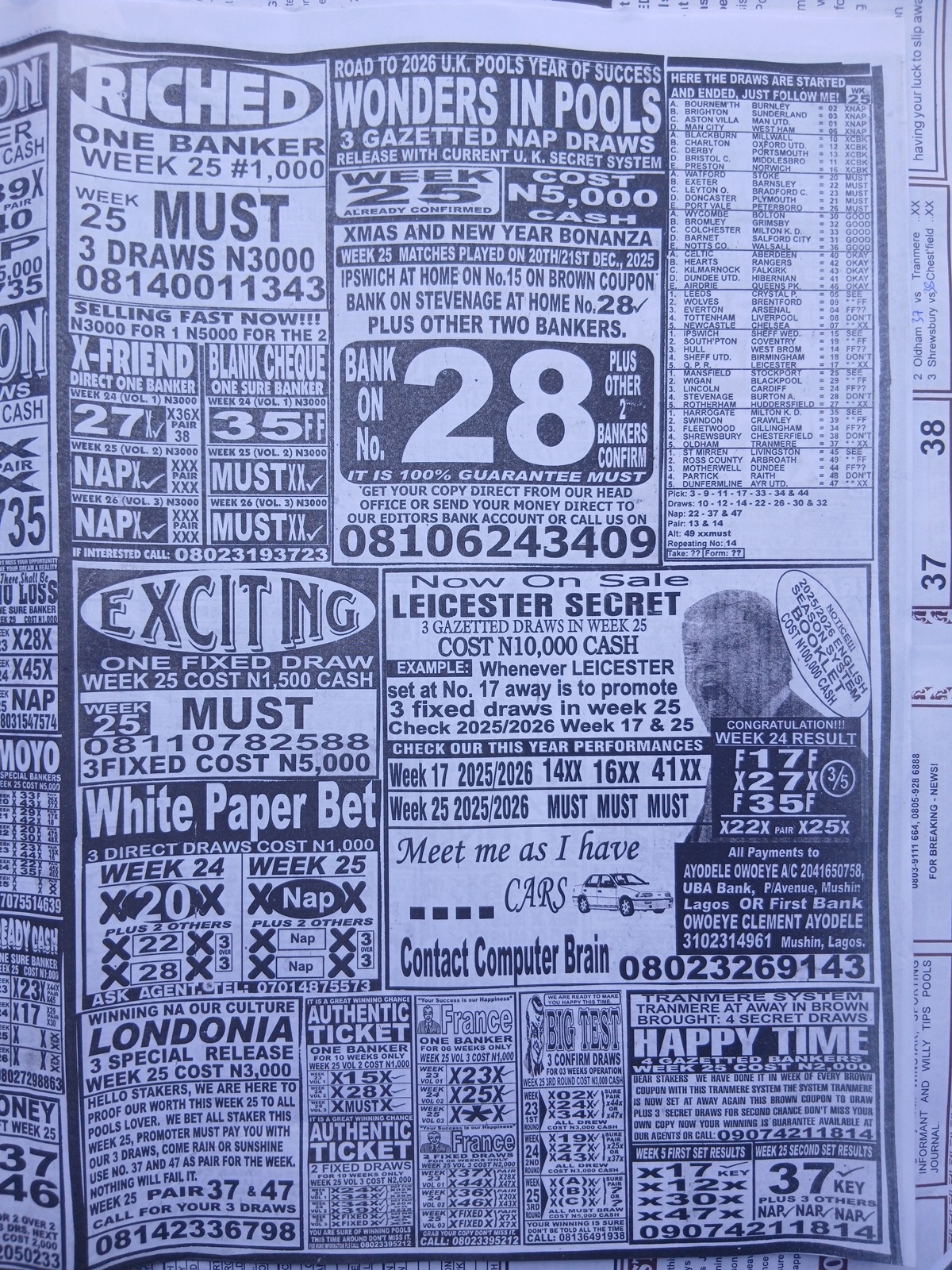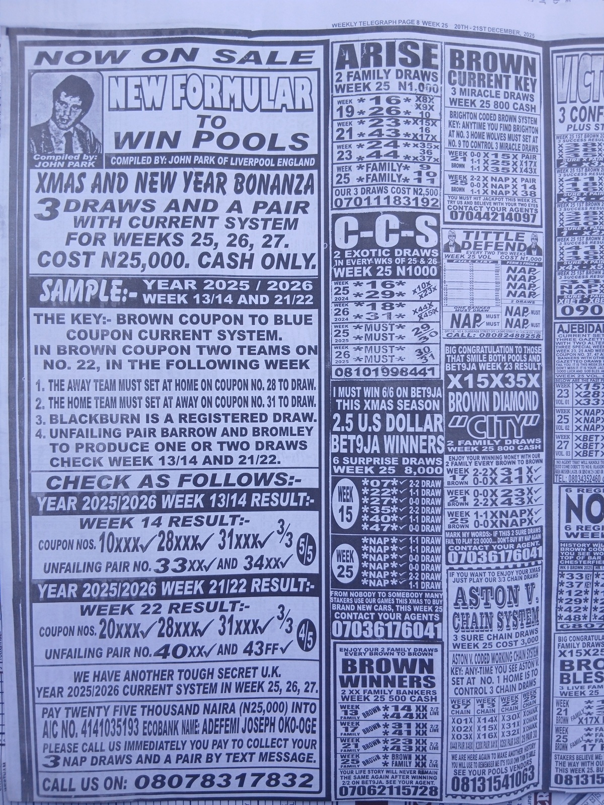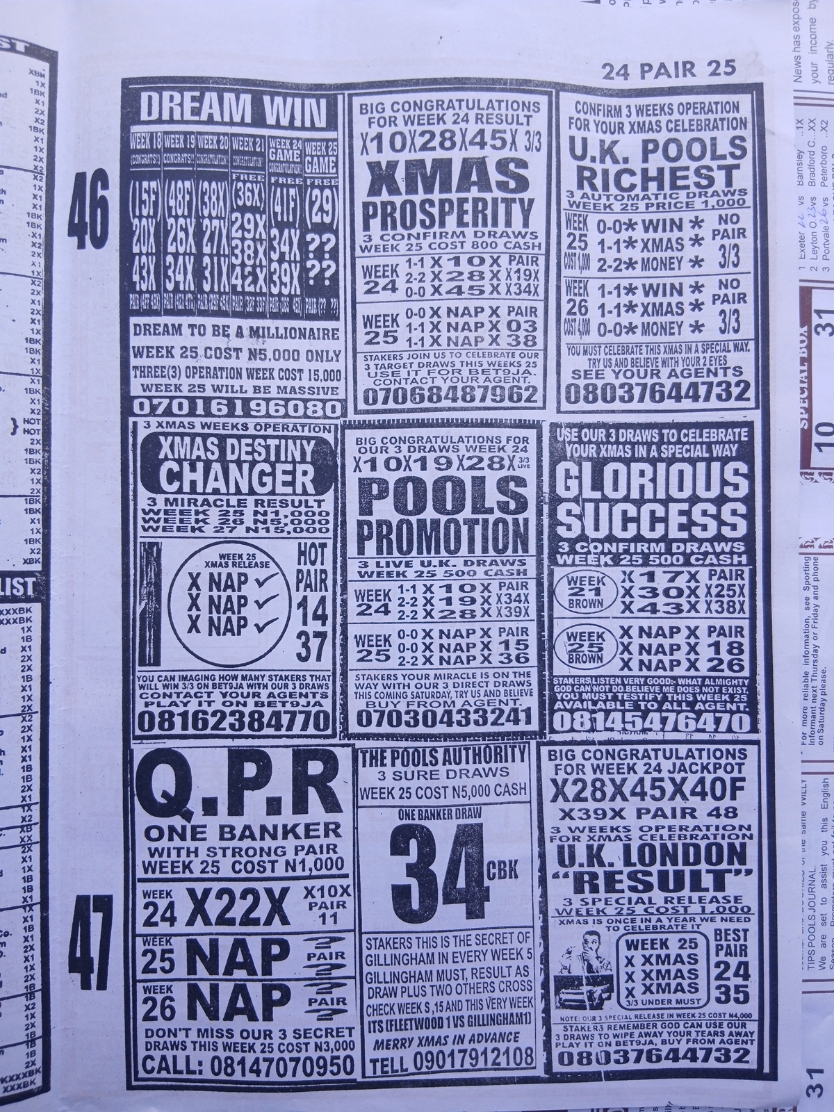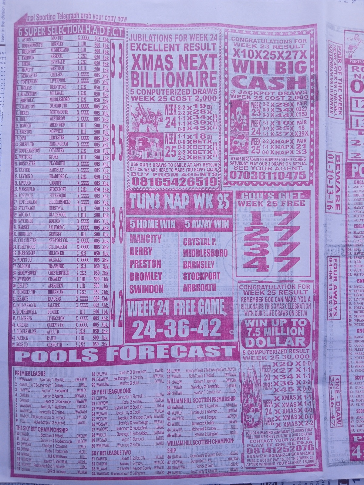 CHECK ASO: Current Week 25 Pool Late News Papers 2025 ~ BigWin, Pools Telegraph, Temple Of Draws