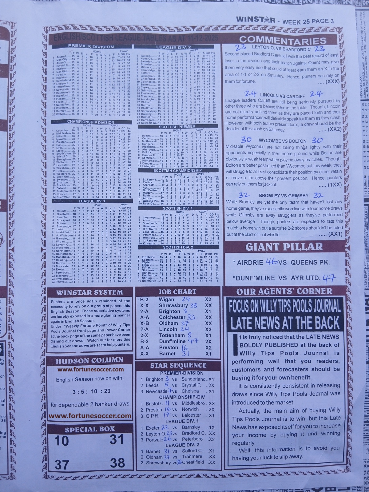 Week 25 Pool Late Newspapers 2025: pool punters — whether you’re a weekend hobbyist or a full-time compiler — know there’s a difference between guessing and forecasting. Week 25’s late newspapers remain one of the most reliable bridges between raw fixture results and high-probability betting lines. In this article, we will show what these late newspapers offer in terms of draw prediction, practical analysis, draws exposure, free weekly insights, best tips on banker draws, reliable winning lines, pairs and “cannot draw” candidates, potential draws, expert keys, and expert predictions.