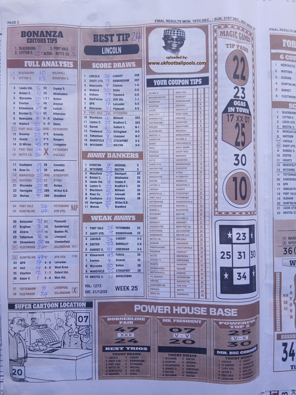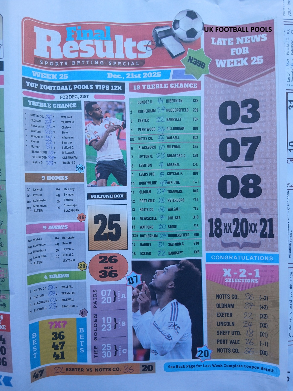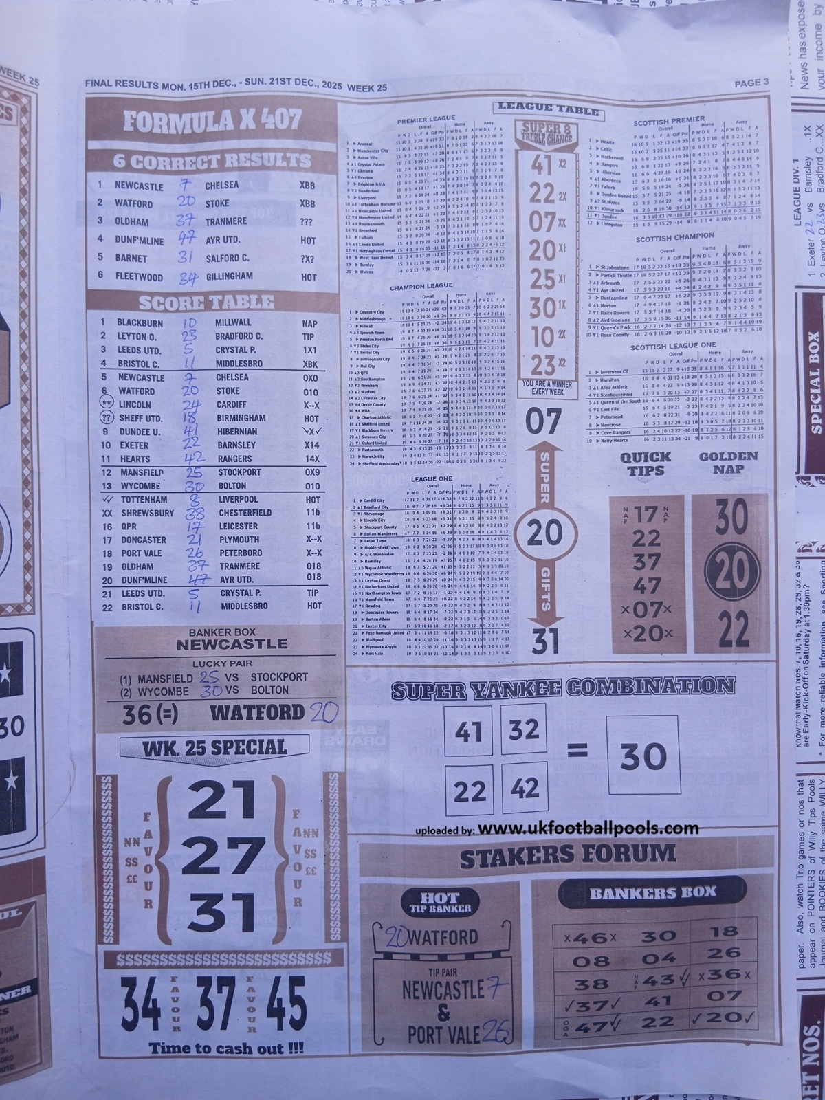 - Current Week 25 Pool Results 2025 For Sat, Dec 20 - UK 2025/2026 Pools