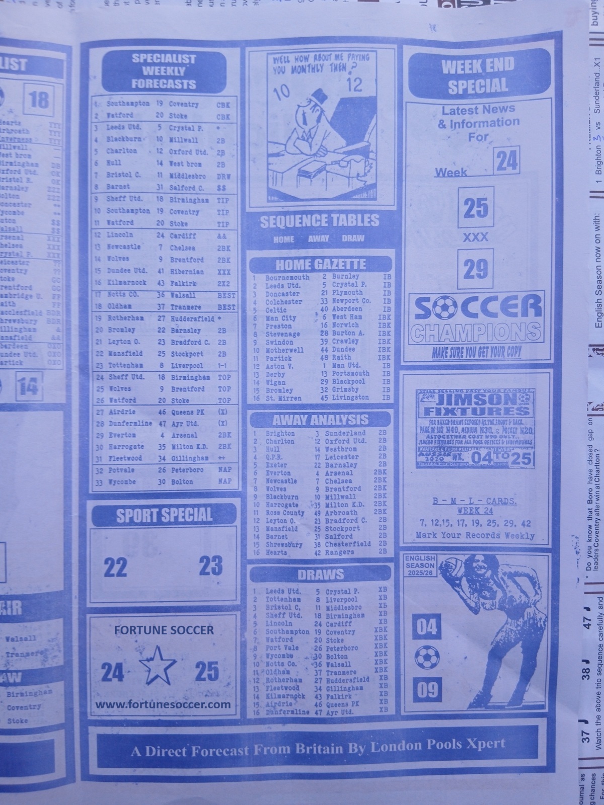 For week 25, the late papers are particularly useful because fixtures have matured: you have enough season context to spot trends, yet still enough variability for clever forecasting. The late papers synthesize this context into short, actionable guidance: banker suggestions, “cannot draw” alerts, likely paired results, and a hierarchy of draws that helps you build a week’s forecast with balance between risk and reward.