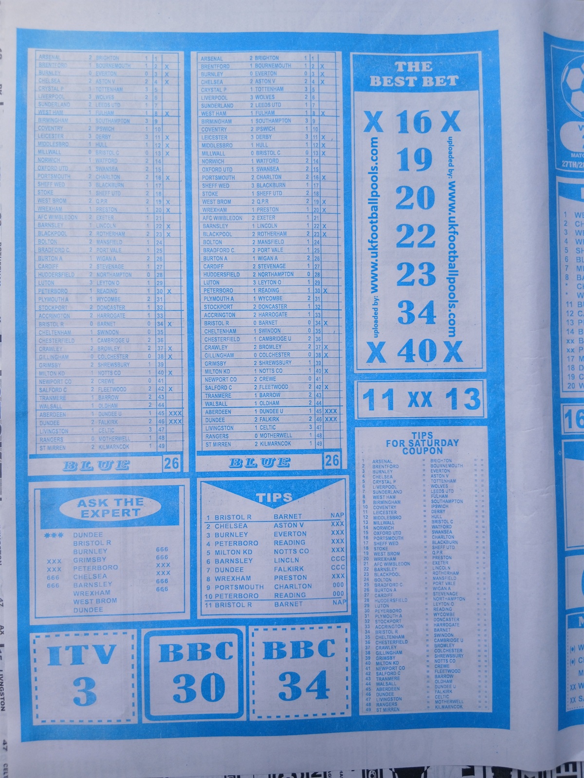 - Current Week 13 Pool Fixtures 2025 For Sat, Sept 27 - UK 2025/2026 Pools