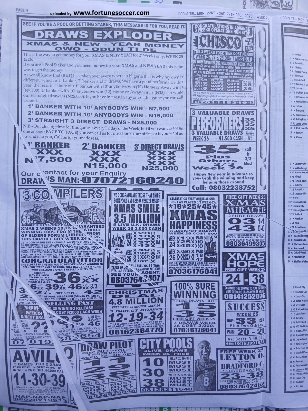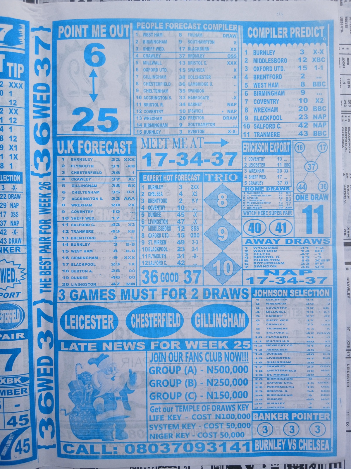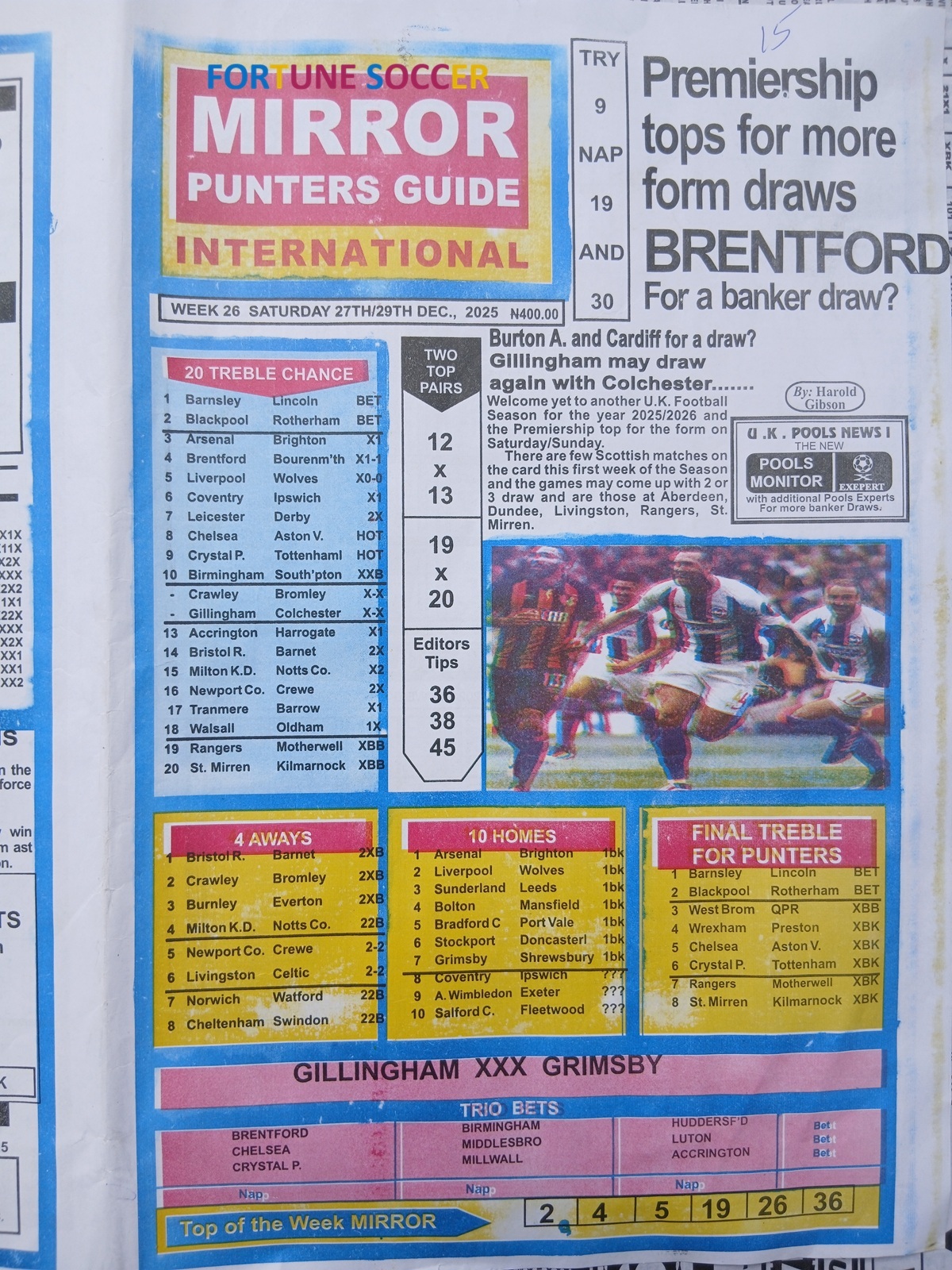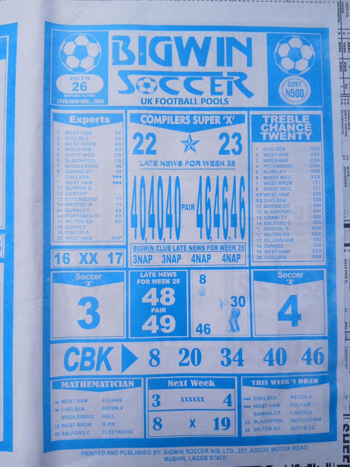 CHECK ALSO: Current Week 26 Pool Late News Papers 2025 ~ Sport Officer, Soccer Standard, Weekly Telegraph