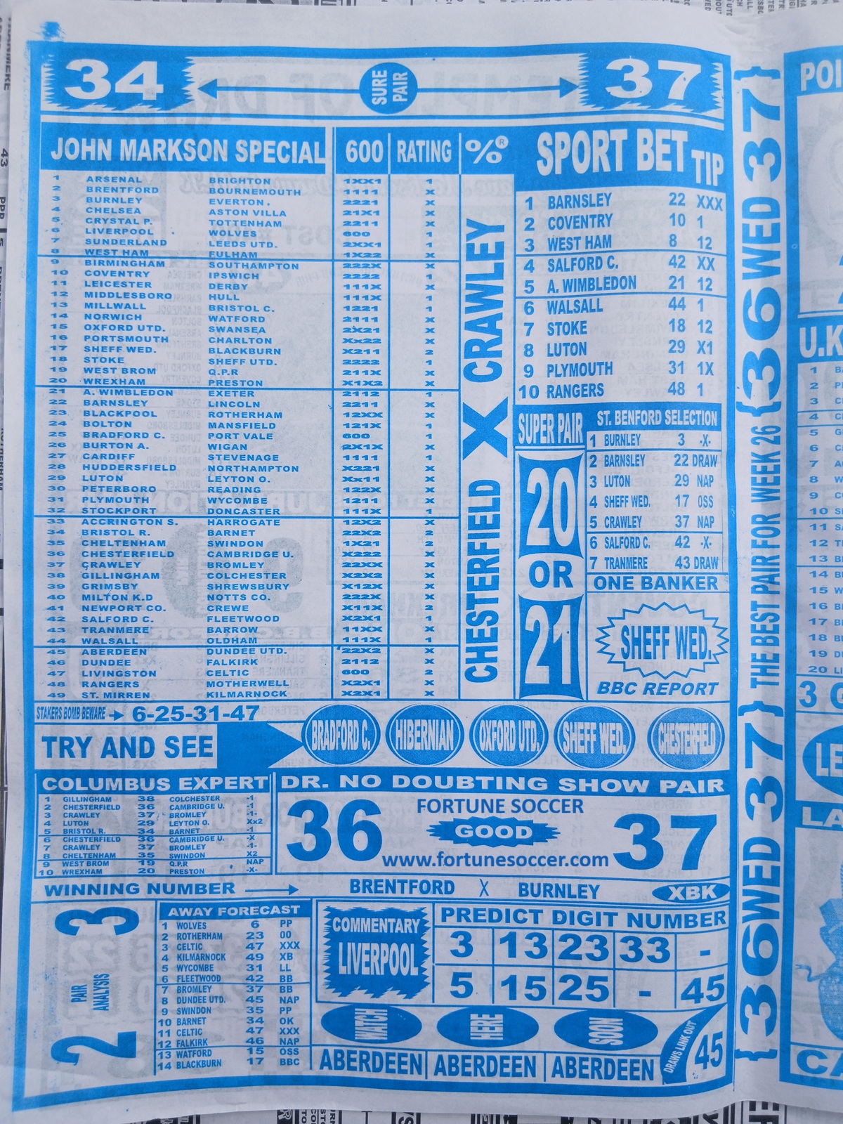 Football pools late news papers are vital tools for punters who want accurate, last-minute insights before making their staking decisions. They offer expert analyses, banker draws, reliable pairs, dead games (cannot draw), and updated forecasts that help maximize winnings. Each late news paper has its own strength, format, and unique way of presenting valuable information. Below is what each of these popular late news papers offers and how it can benefit punters.