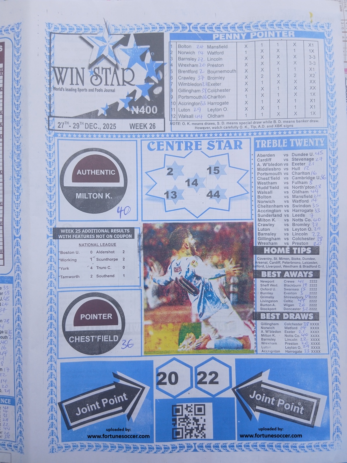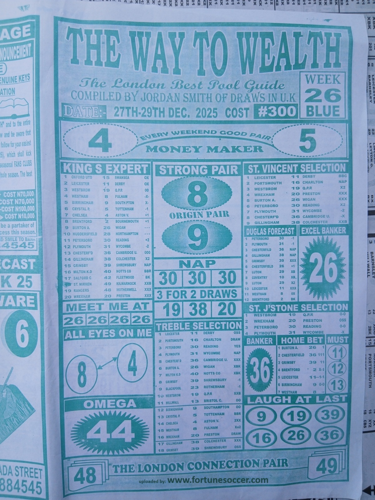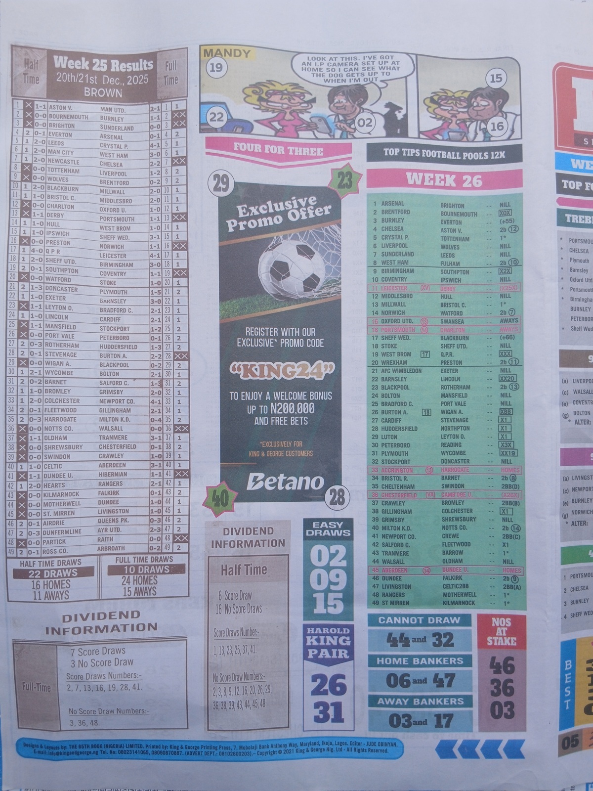 - Current Week 26 Pool Results 2025 For Sat, Dec 27 - UK 2025/2026 Pools