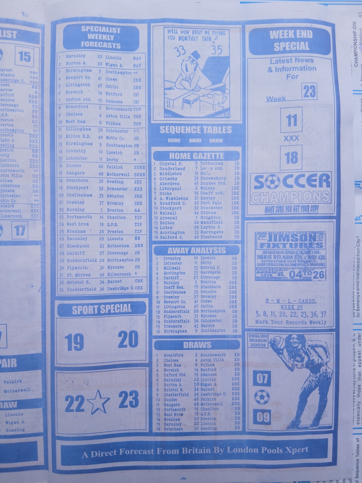 - Current Week 23 Pool Results 2025 For Sat, Dec 06 - UK 2025/2026 Pools