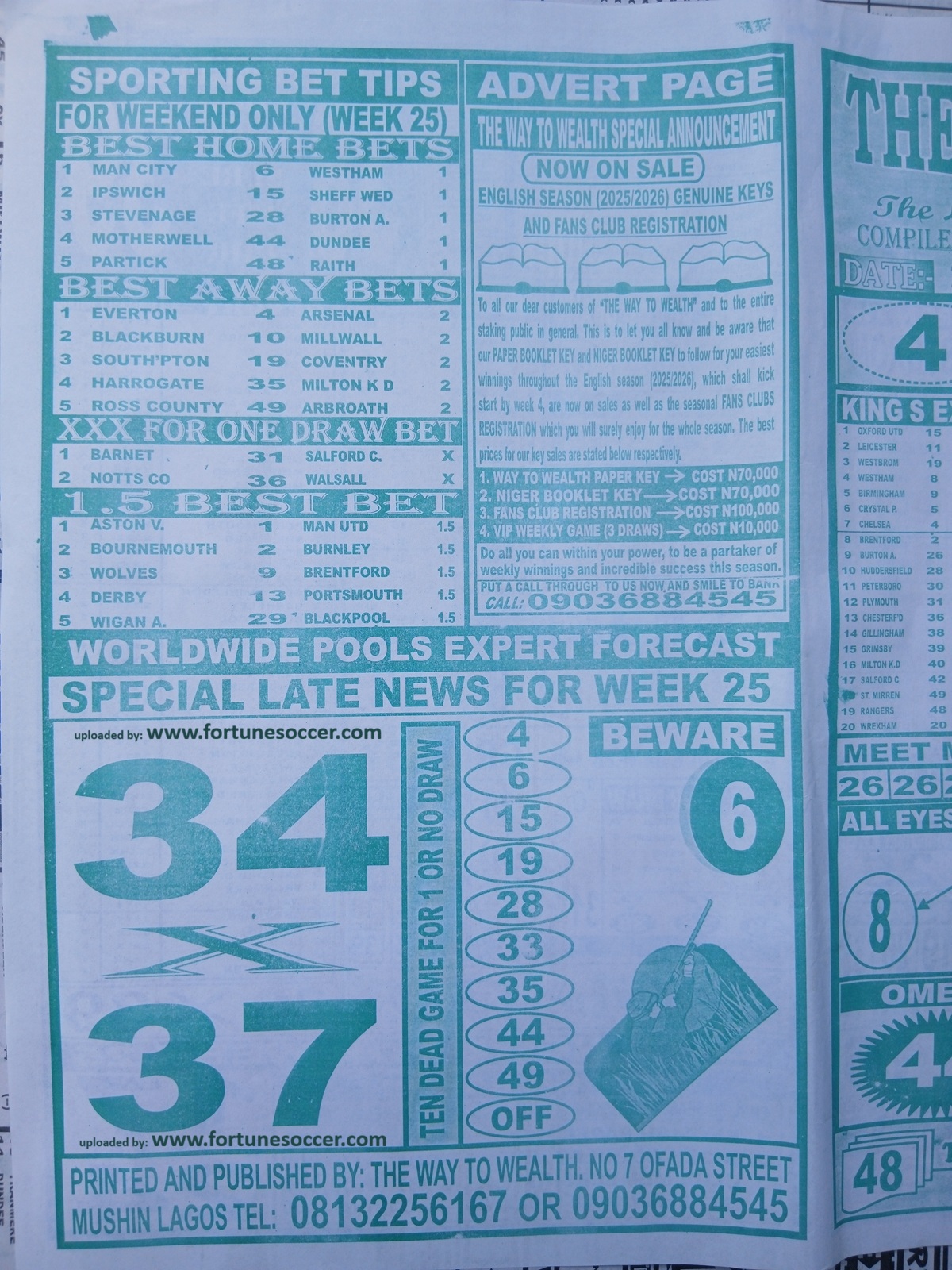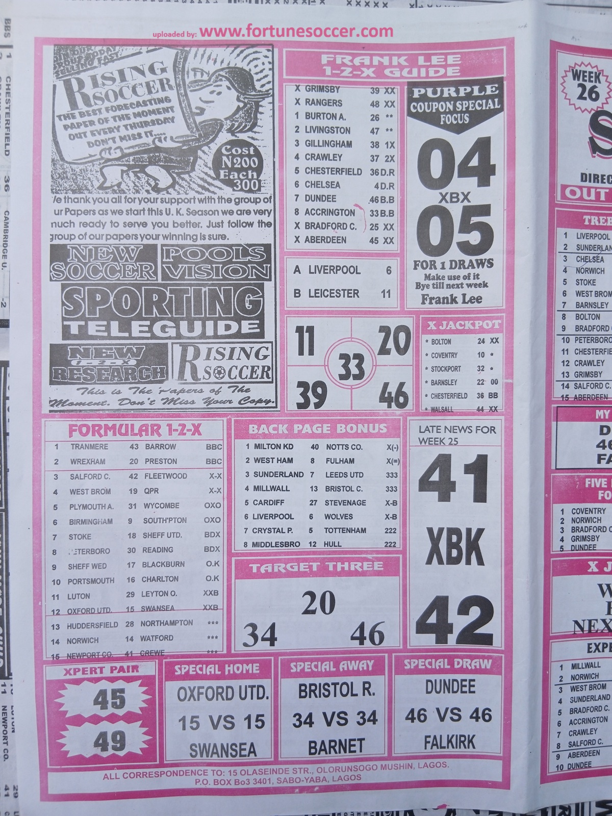 CHECK ASO: Current Week 26 Pool Late News Papers 2025 ~ BigWin, Pools Telegraph, Temple Of Draws