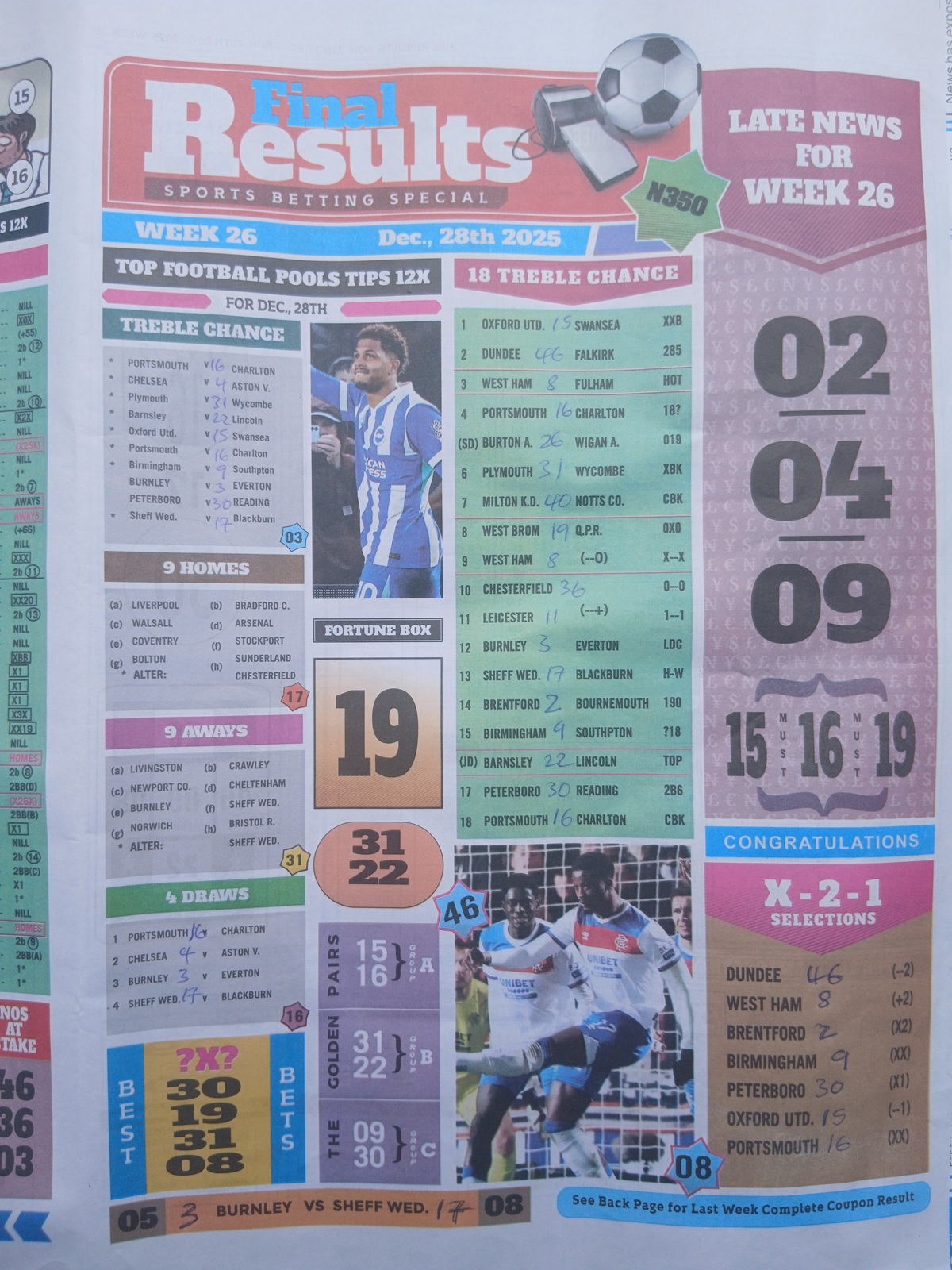 Week 26 Pool Late Newspapers 2025: pool punters — whether you’re a weekend hobbyist or a full-time compiler — know there’s a difference between guessing and forecasting. Week 26’s late newspapers remain one of the most reliable bridges between raw fixture results and high-probability betting lines. In this article, we will show what these late newspapers offer in terms of draw prediction, practical analysis, draws exposure, free weekly insights, best tips on banker draws, reliable winning lines, pairs and “cannot draw” candidates, potential draws, expert keys, and expert predictions.