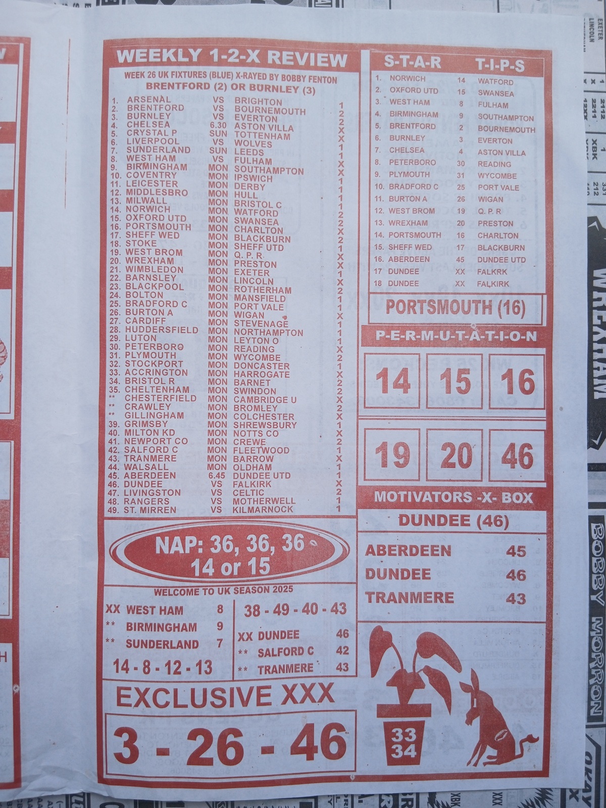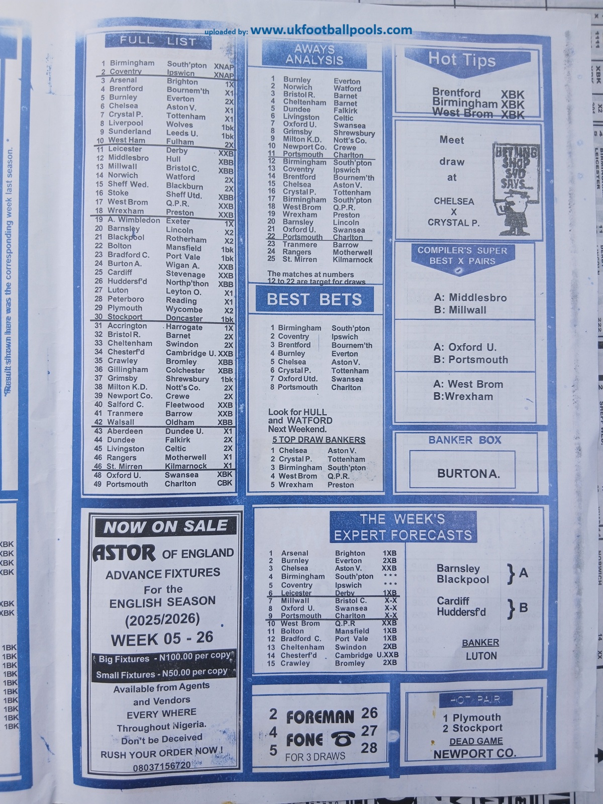 - Avoid overcrowded favorites: If Weekly Telegraph or Mirror shows a heavy public bias, avoid overplaying that line in multiple tickets.