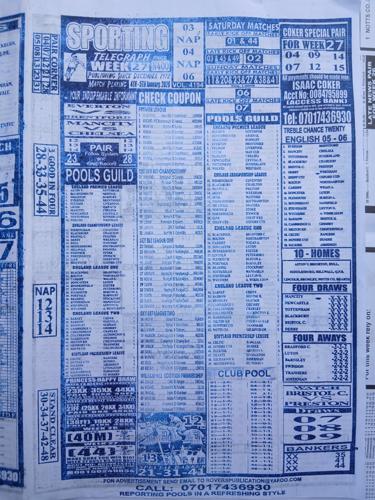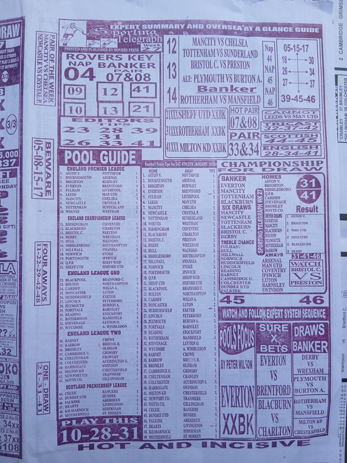 - How to use it: Use the Weekly Telegraph for quick validation. If both Soccer Standard and Weekly Telegraph point to the same banker, that’s a reliability multiplier. Conversely, if Telegraph flags a “cannot draw” that other papers like, reconsider that pick.