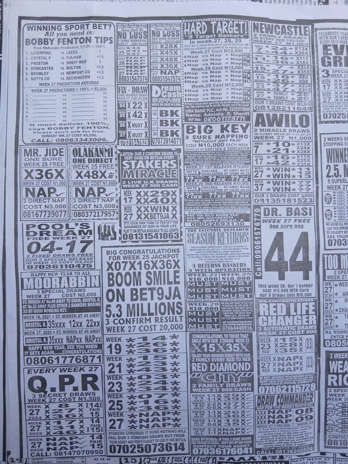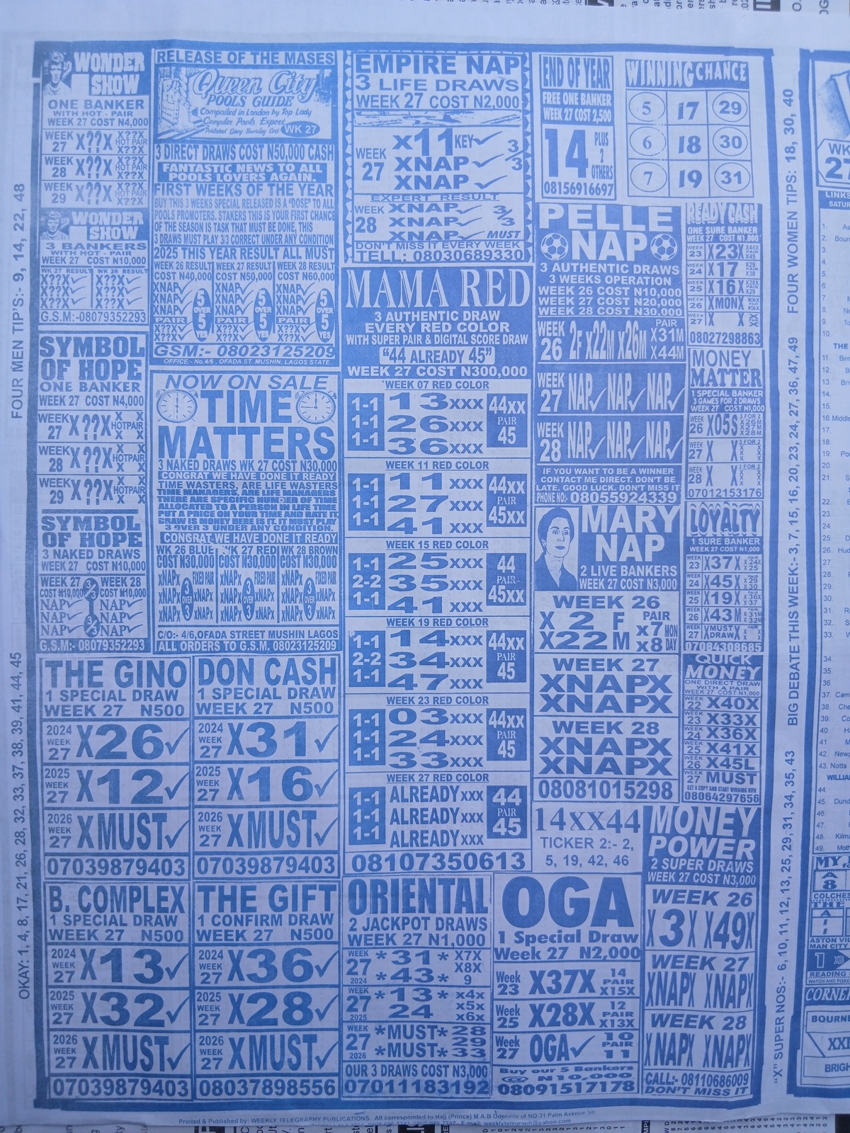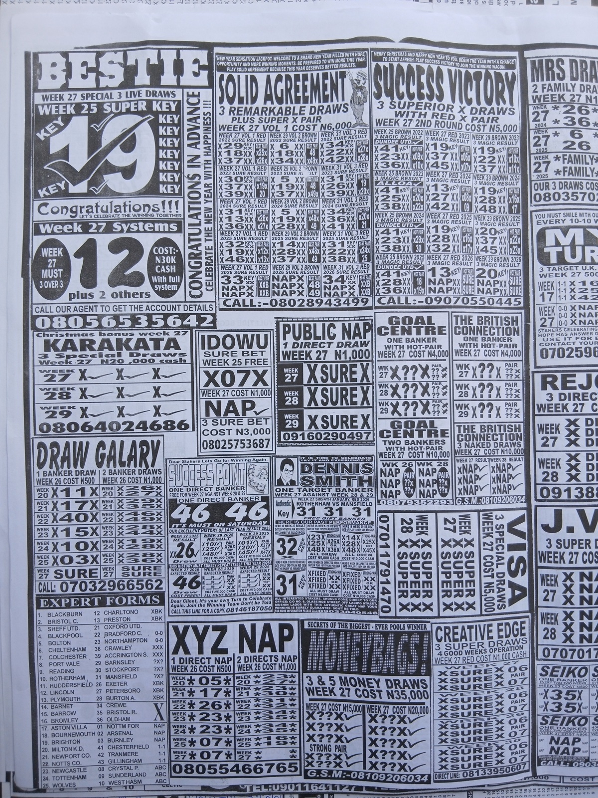 CHECK ASO: Current Week 27 Pool Late News Papers 2025 ~ BigWin, Pools Telegraph, Temple Of Draws