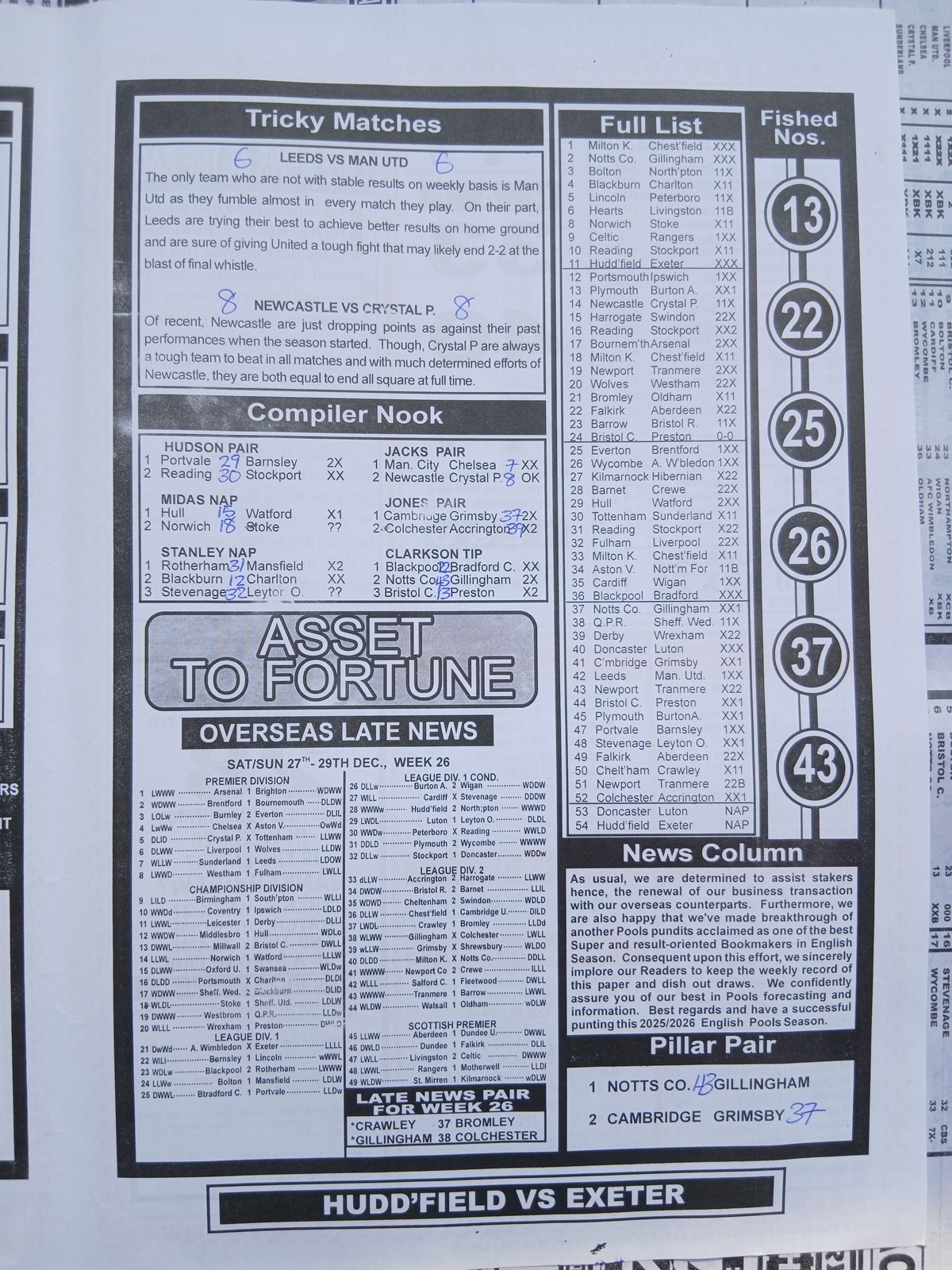 - Current Week 26 Pool Results 2025 For Sat, Dec 27 - UK 2025/2026 Pools