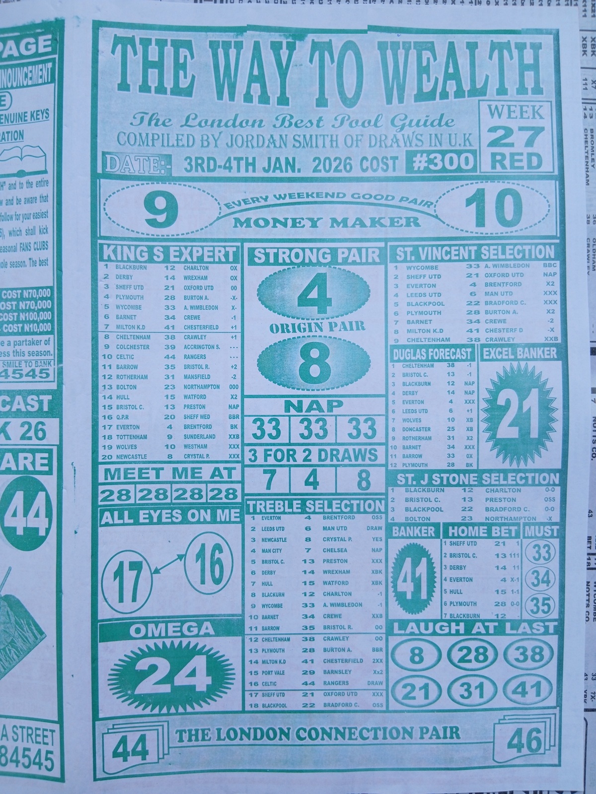 - Current Week 27 Pool Results 2026 For Sat, Jan 03 - UK 2025/2026 Pools