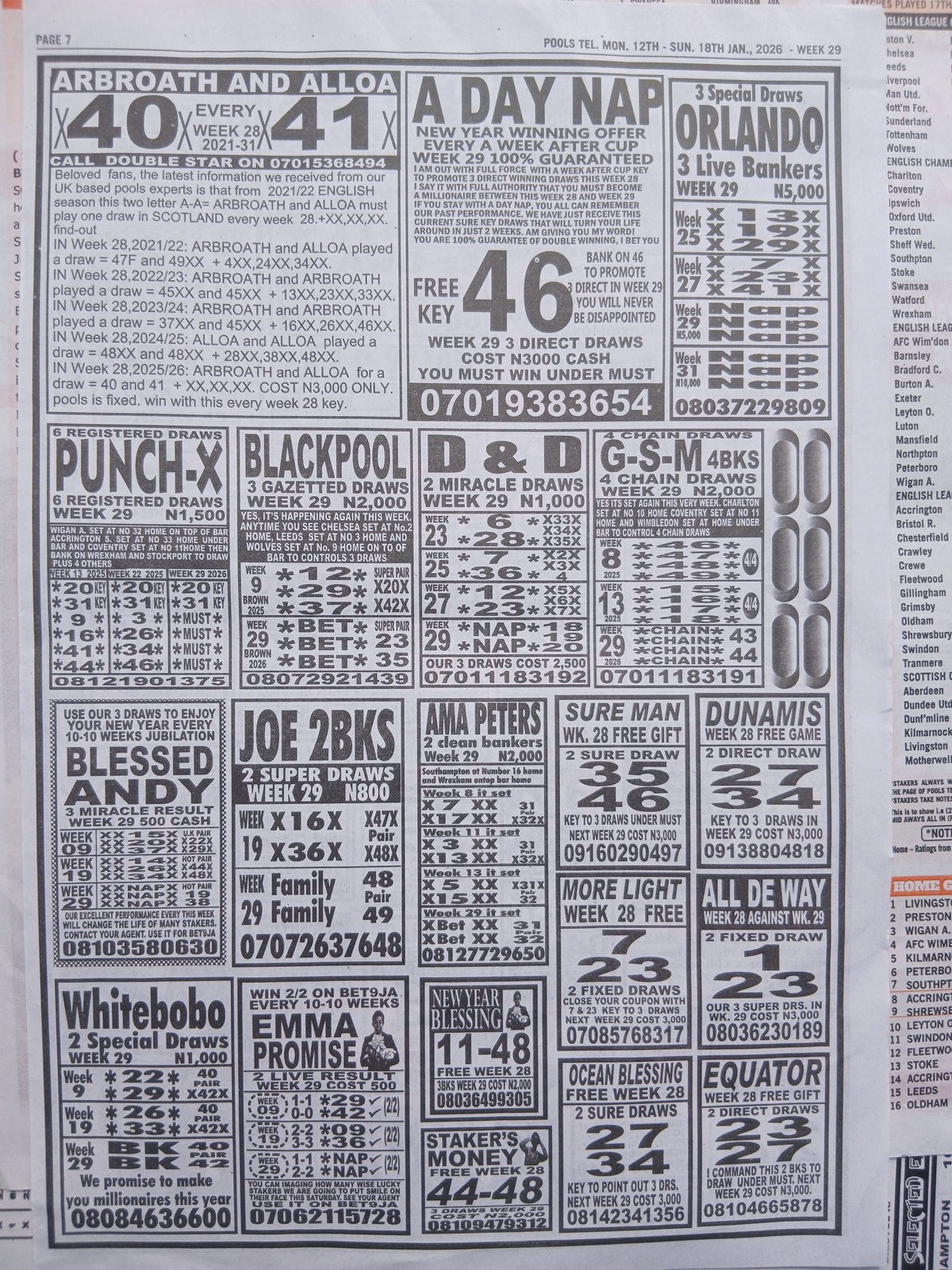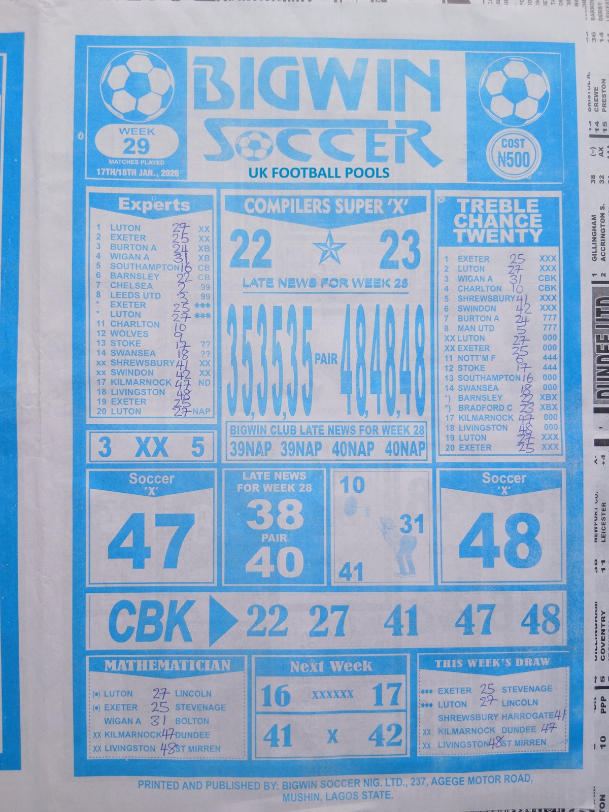 CHECK ALSO: Current Week 29 Pool Late News Papers 2026 ~ Sport Officer, Soccer Standard, Weekly Telegraph