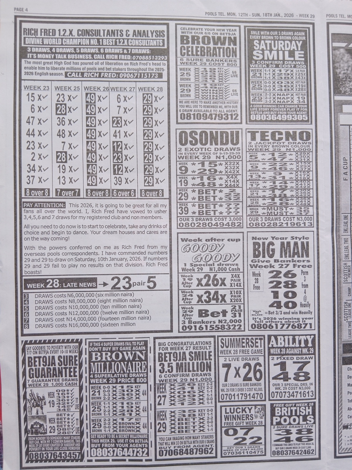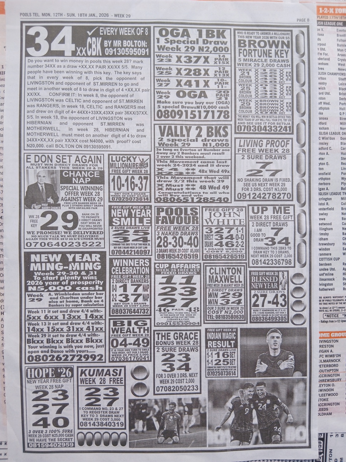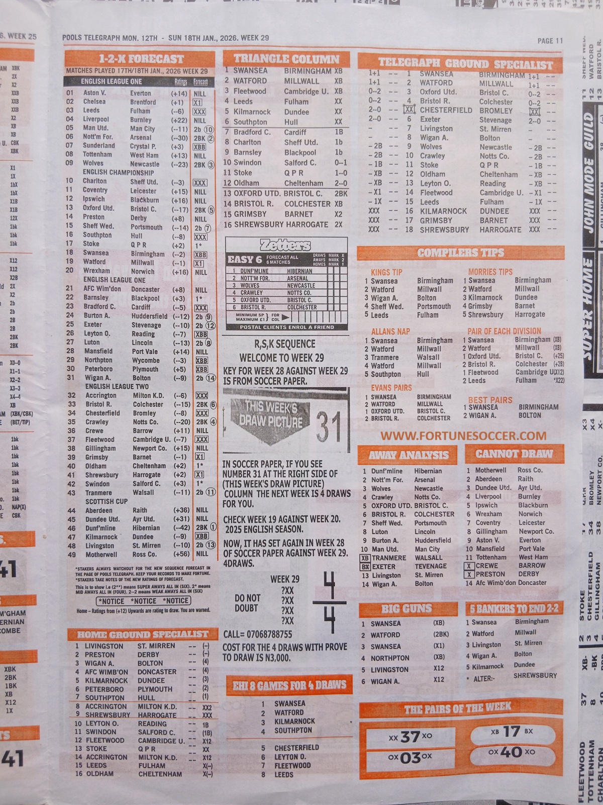 RELATED ARTICLE: Current week 29 Pool Late News Papers 2026 ~ BigWin, Pools Telegraph, Temple of Draws