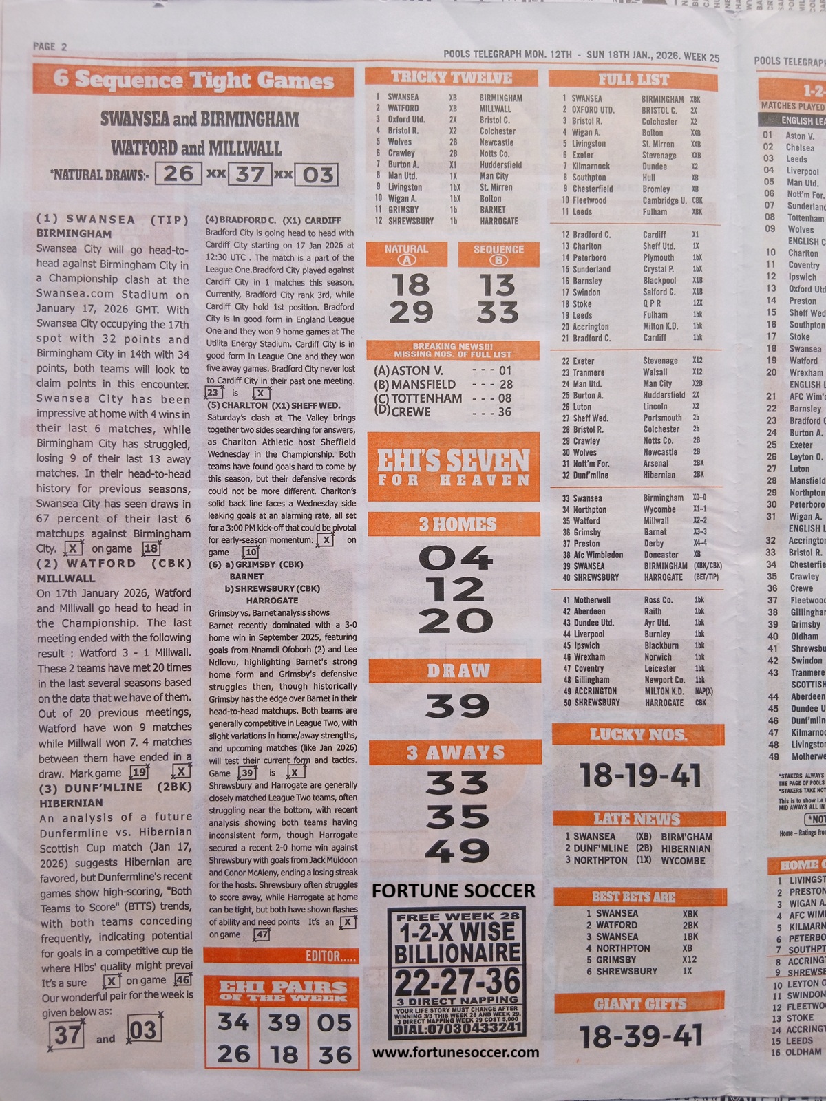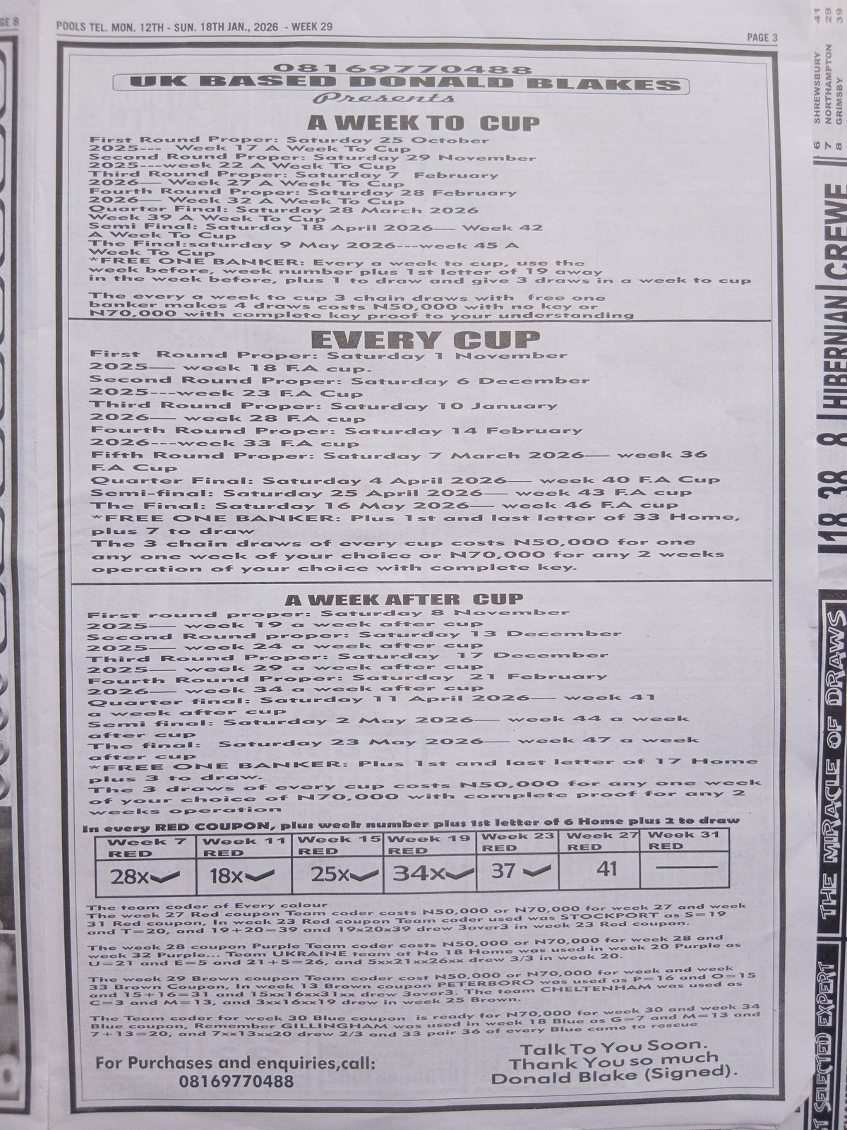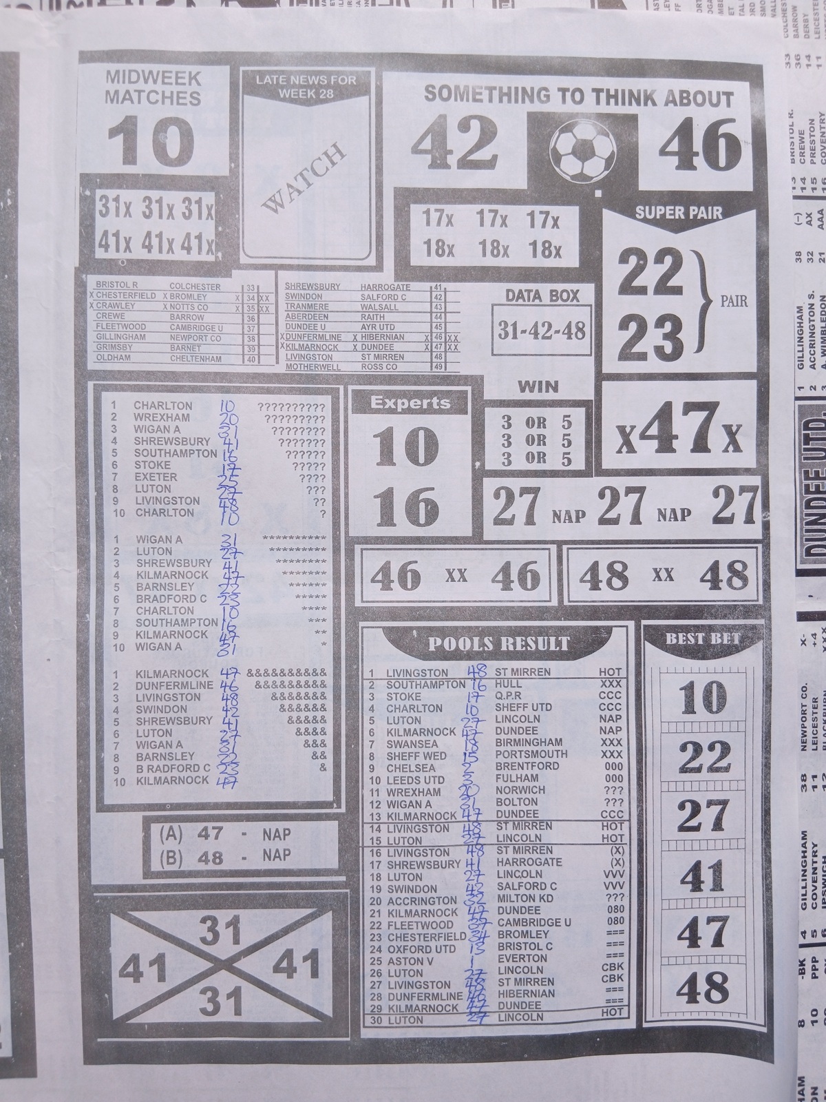 RELATED ARTICLE: Current week 29 Pool Late News Papers 2026 ~ BigWin, Pools Telegraph, Temple of Draws