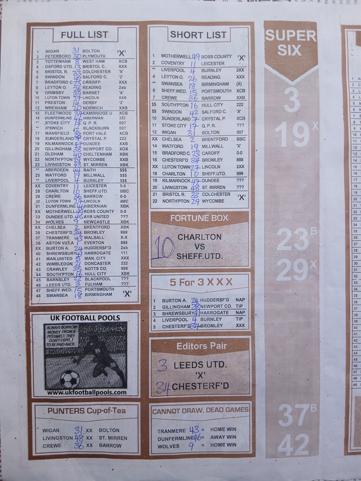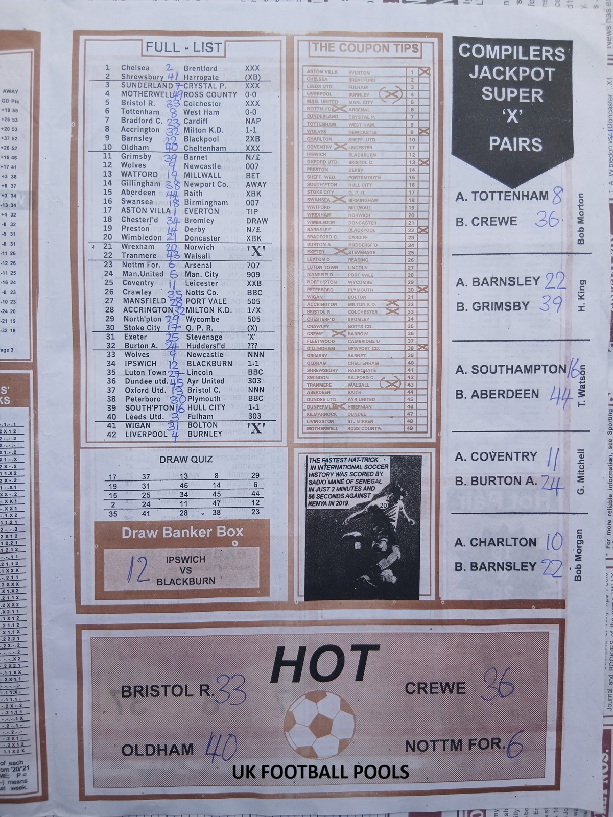 Bob Morton is a household name in the pools world. It is known for its expert compilers and highly detailed analysis.