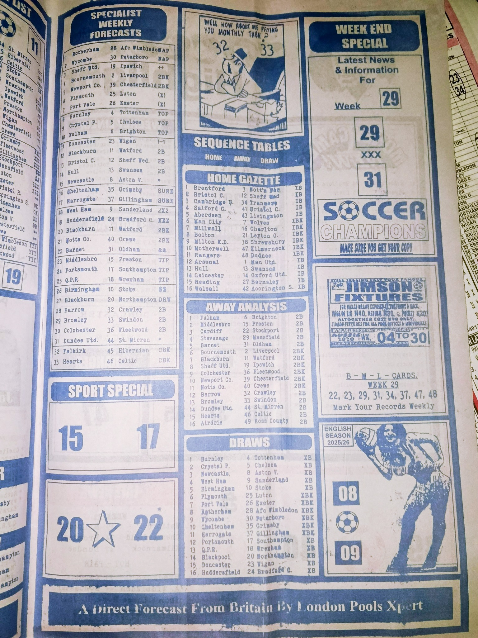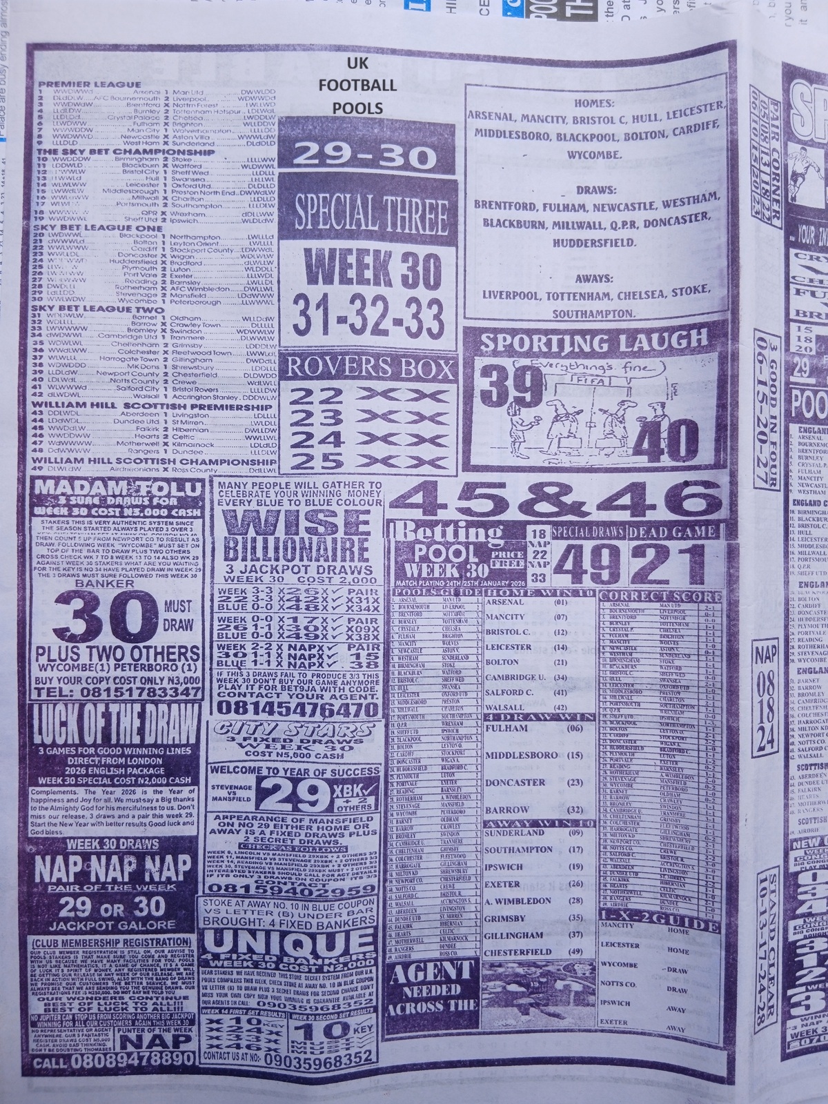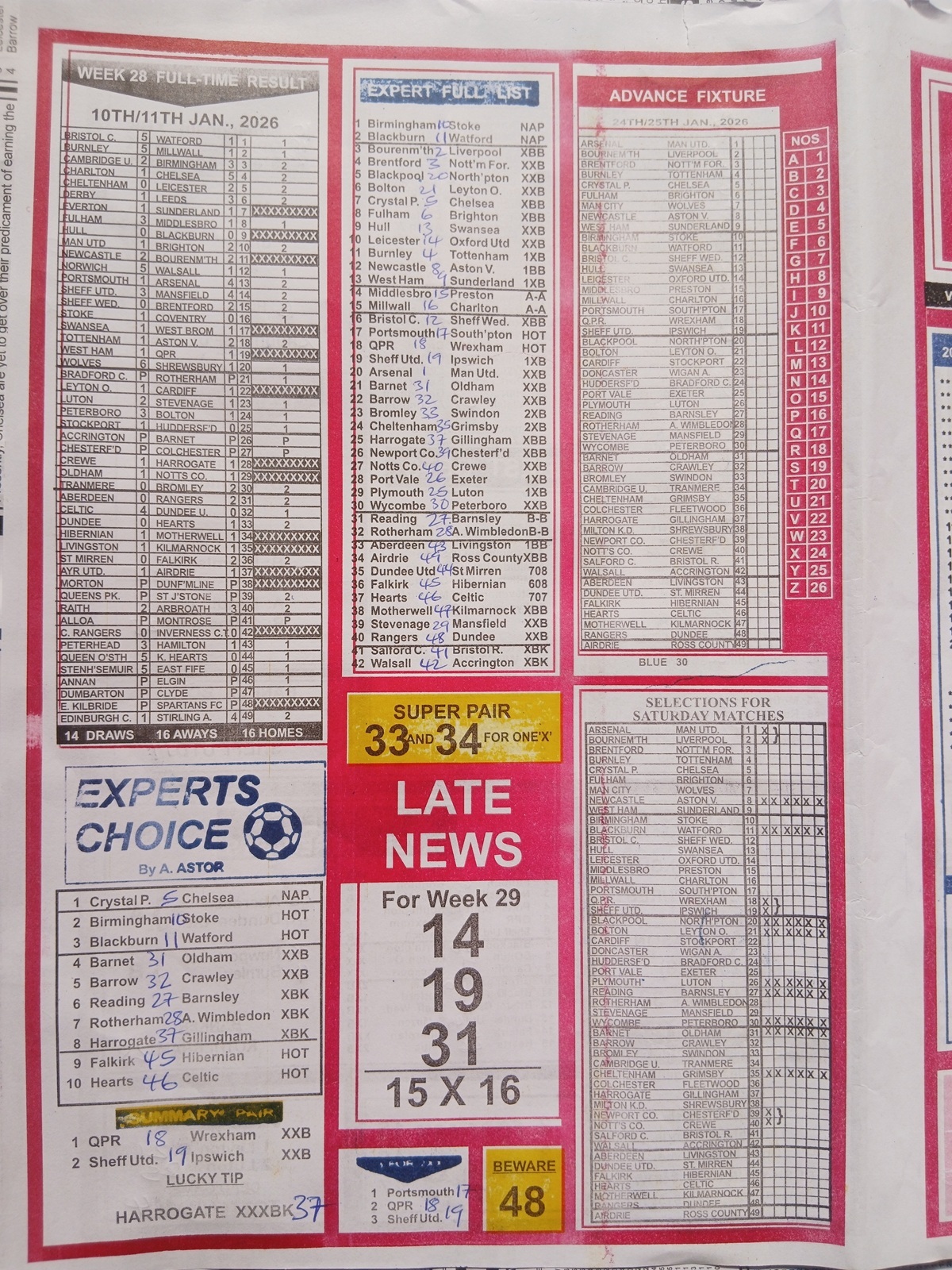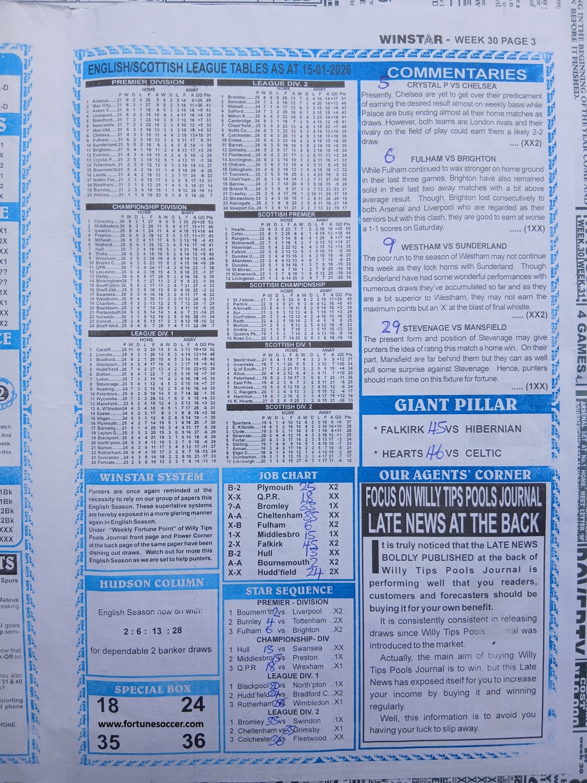 Week 30 Late News Papers: the late editions and specialized pool papers published specifically for pool compilers and punters — are not just collections of picks. They are the product of hours (often decades) of dedicated observation: pattern recognition across seasons, reading manager/team news, injury and suspension updates, pitch and weather considerations, crowd effects, and statistical tendencies such as form cycles and home/away differentials.