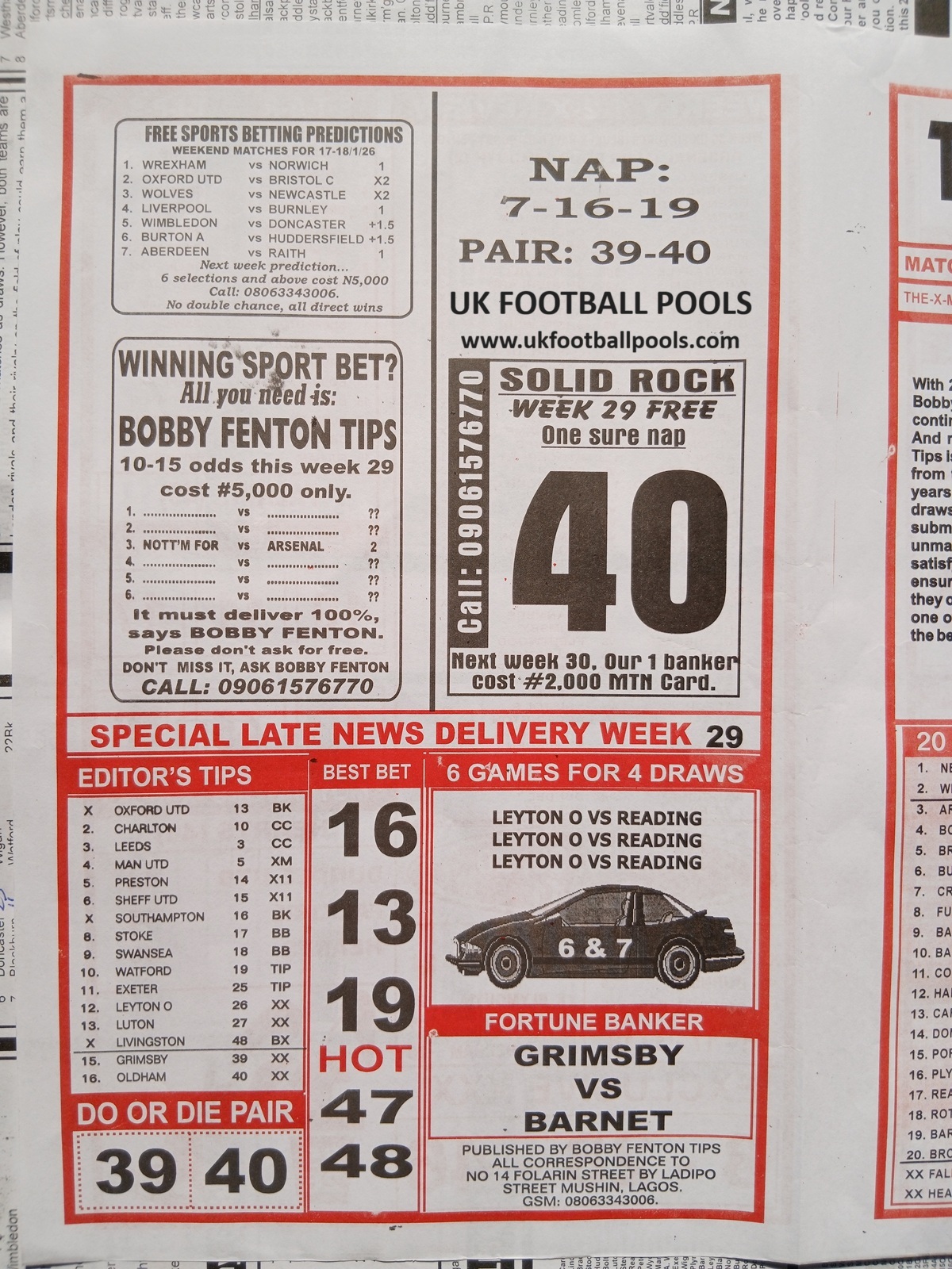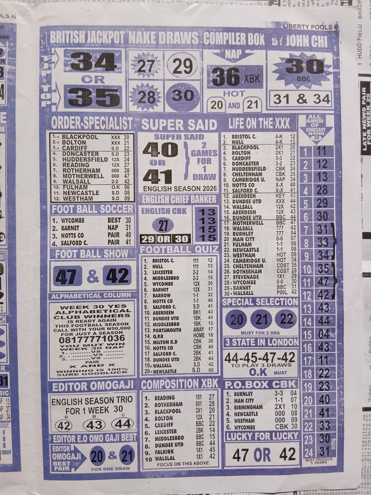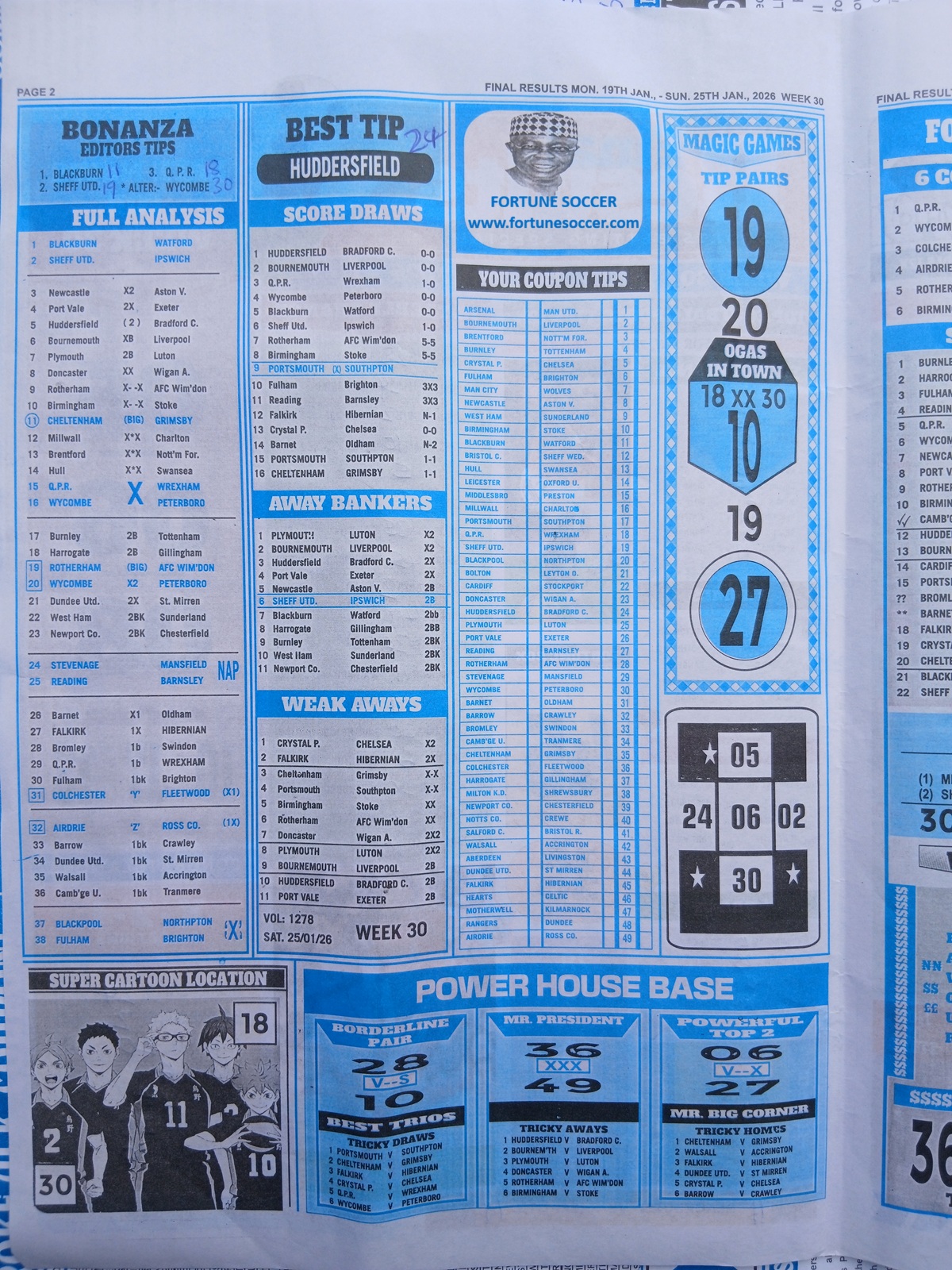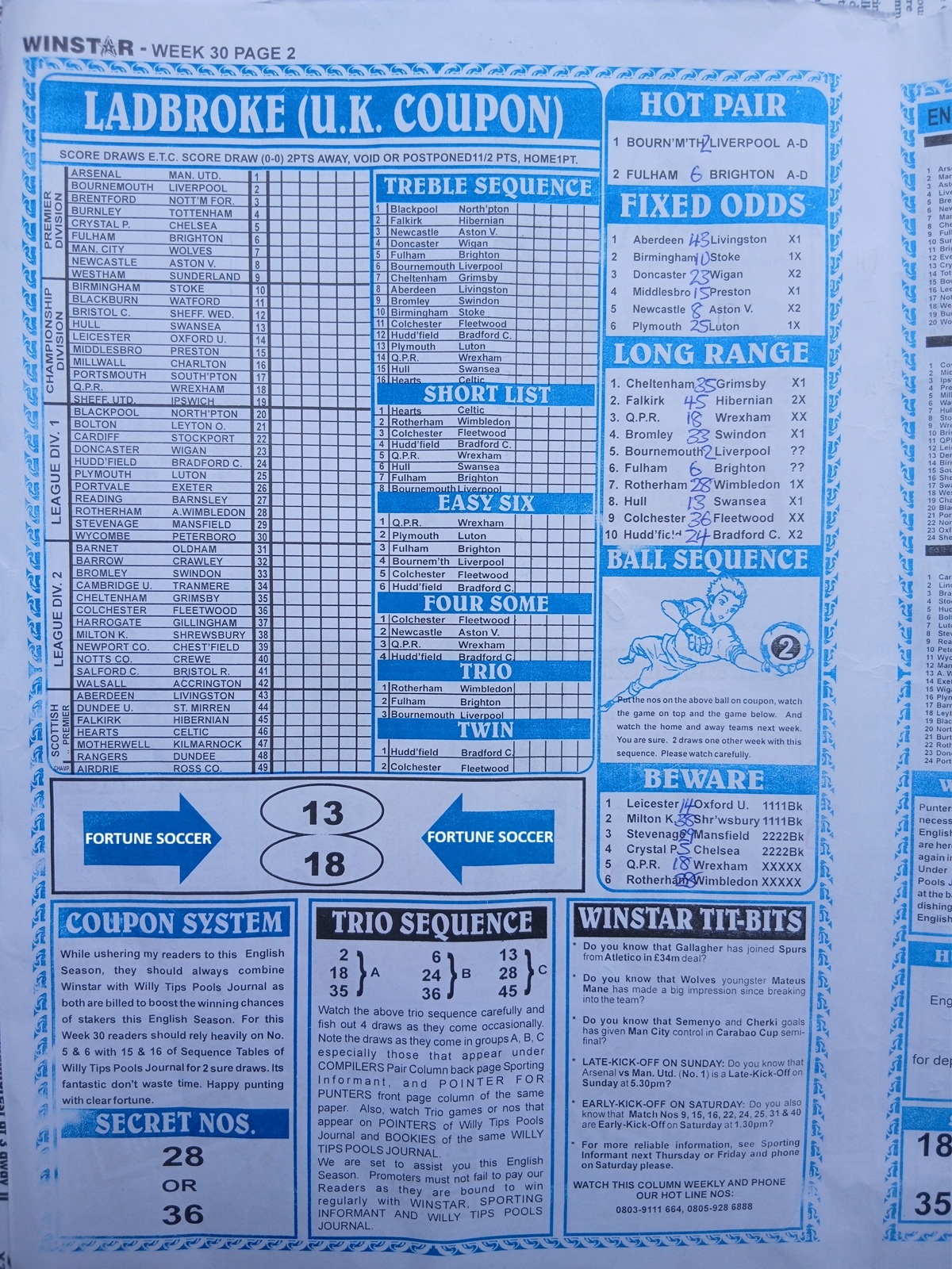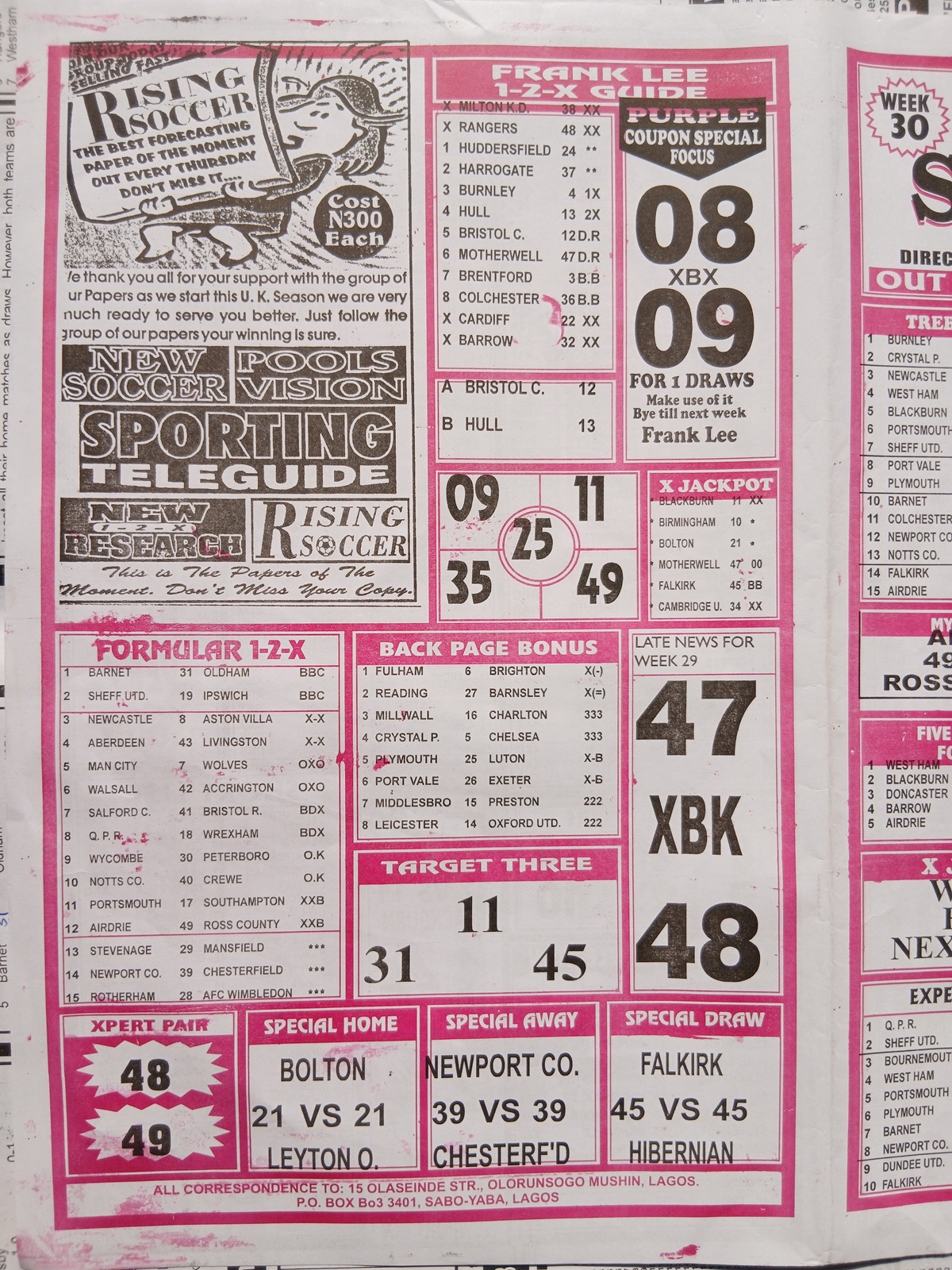 Week 30 Late News Papers: the late editions and specialized pool papers published specifically for pool compilers and punters — are not just collections of picks. They are the product of hours (often decades) of dedicated observation: pattern recognition across seasons, reading manager/team news, injury and suspension updates, pitch and weather considerations, crowd effects, and statistical tendencies such as form cycles and home/away differentials.