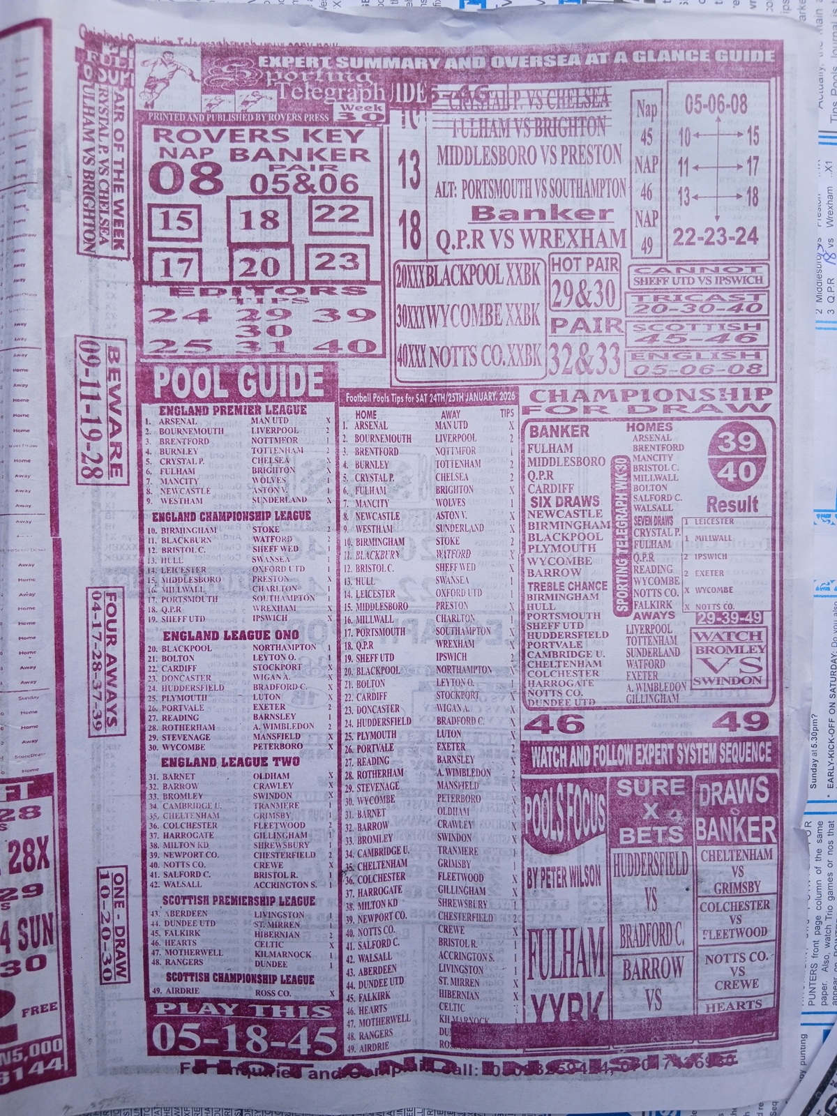 - How to use it: Use the Weekly Telegraph for quick validation. If both Soccer Standard and Weekly Telegraph point to the same banker, that’s a reliability multiplier. Conversely, if Telegraph flags a “cannot draw” that other papers like, reconsider that pick.