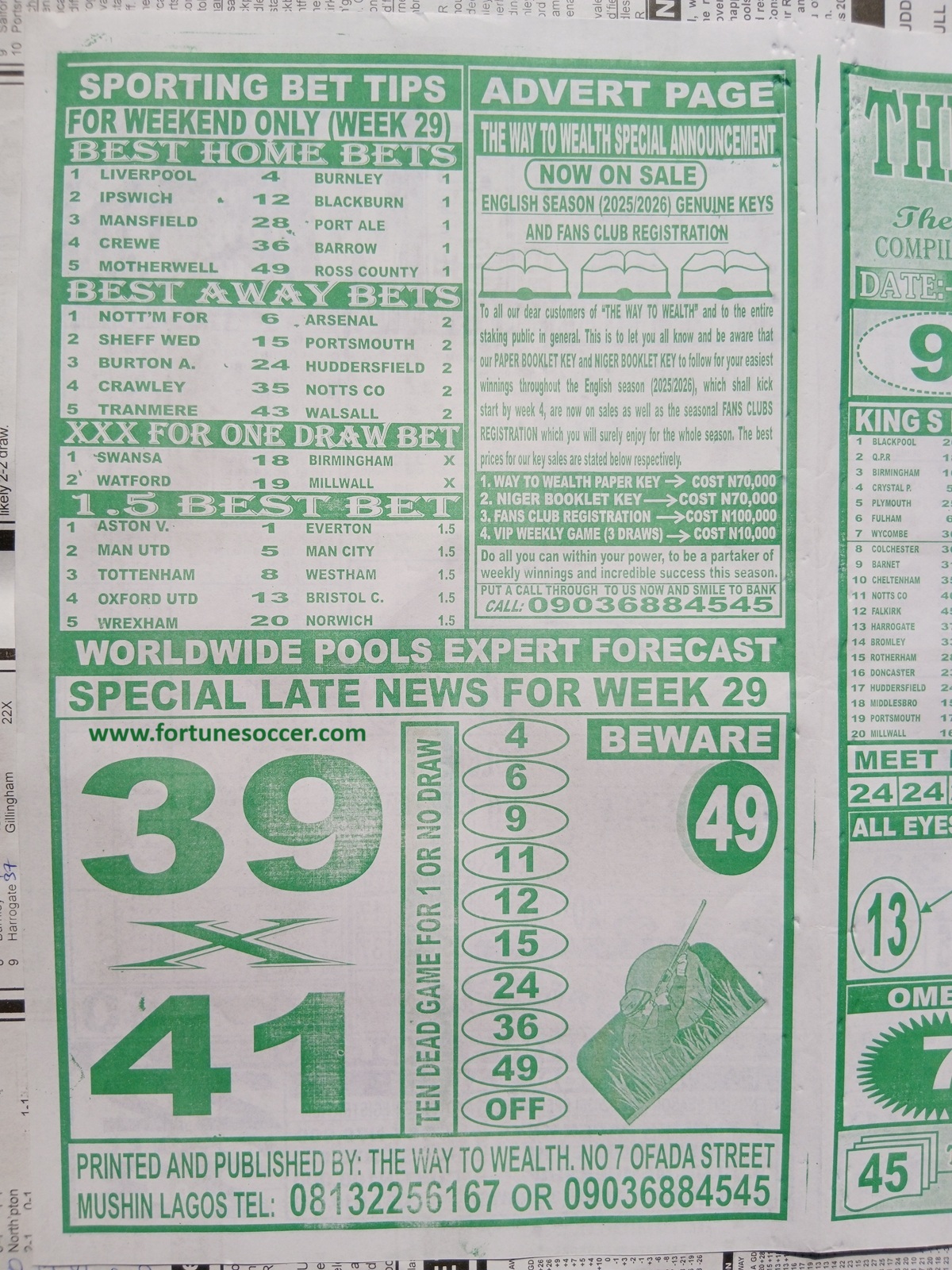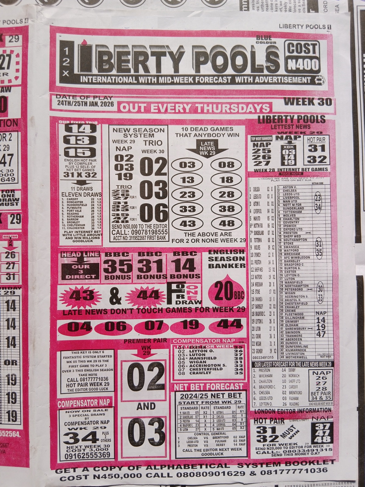 CHECK ALSO: Current Week 30 Pool Late News Papers 2026 ~ BigWin, Pools Telegraph, Temple Of Draws