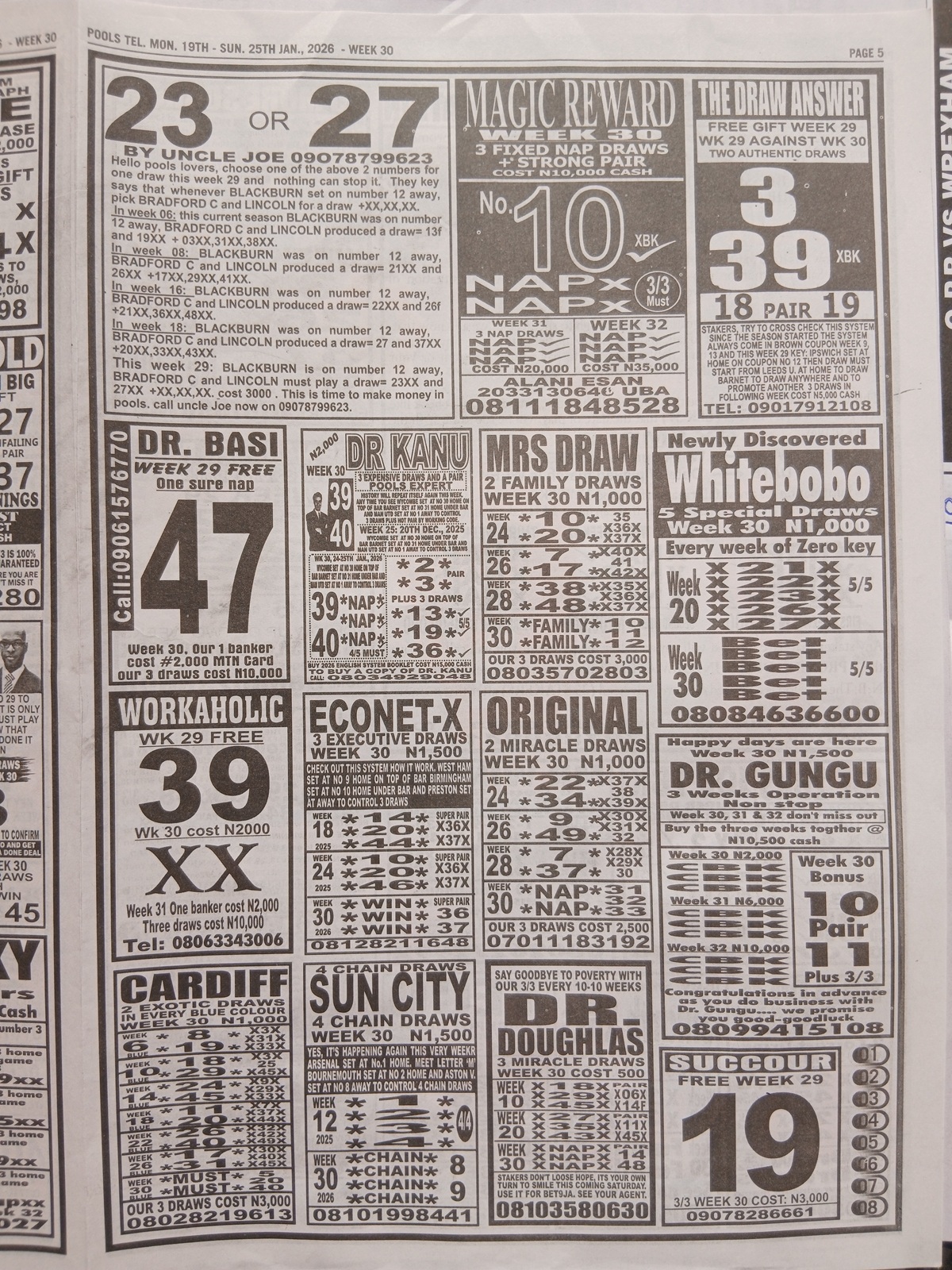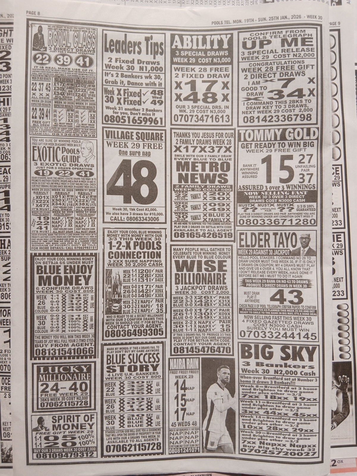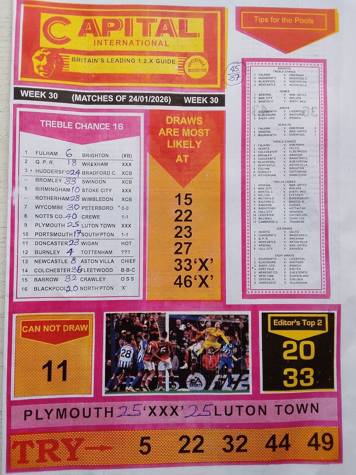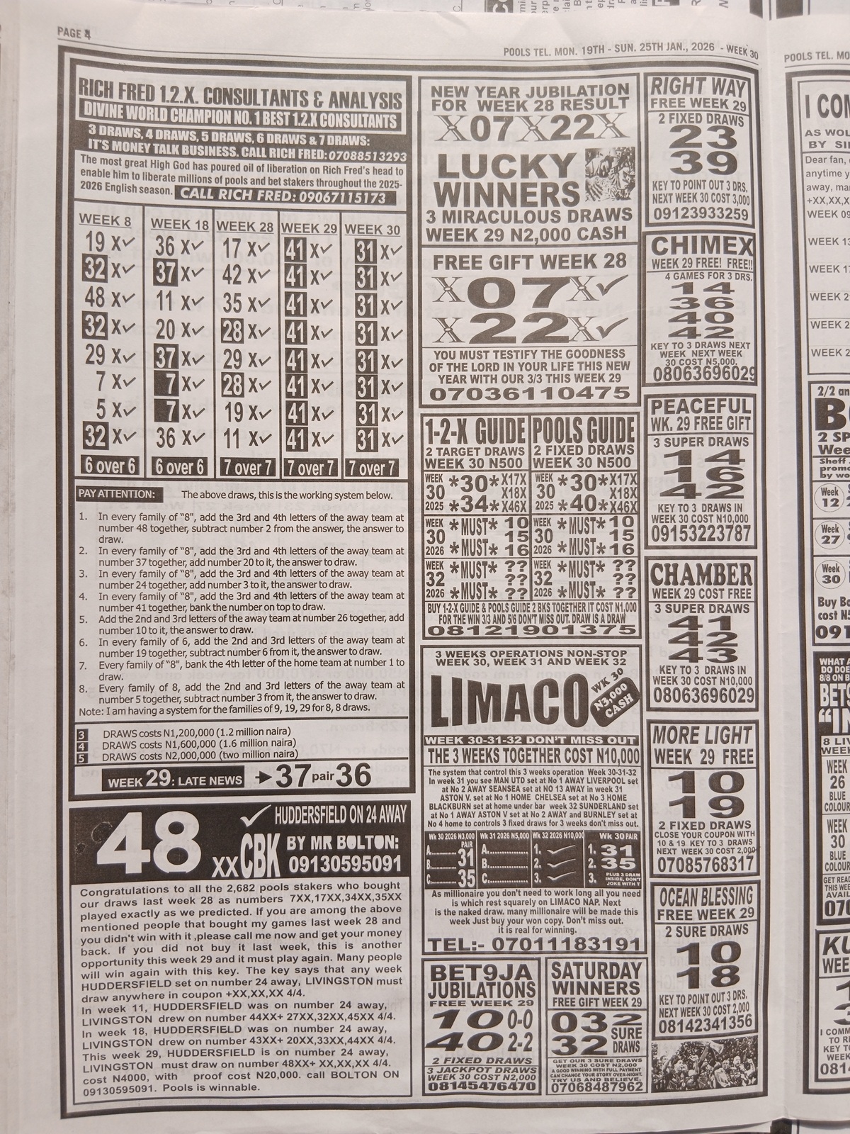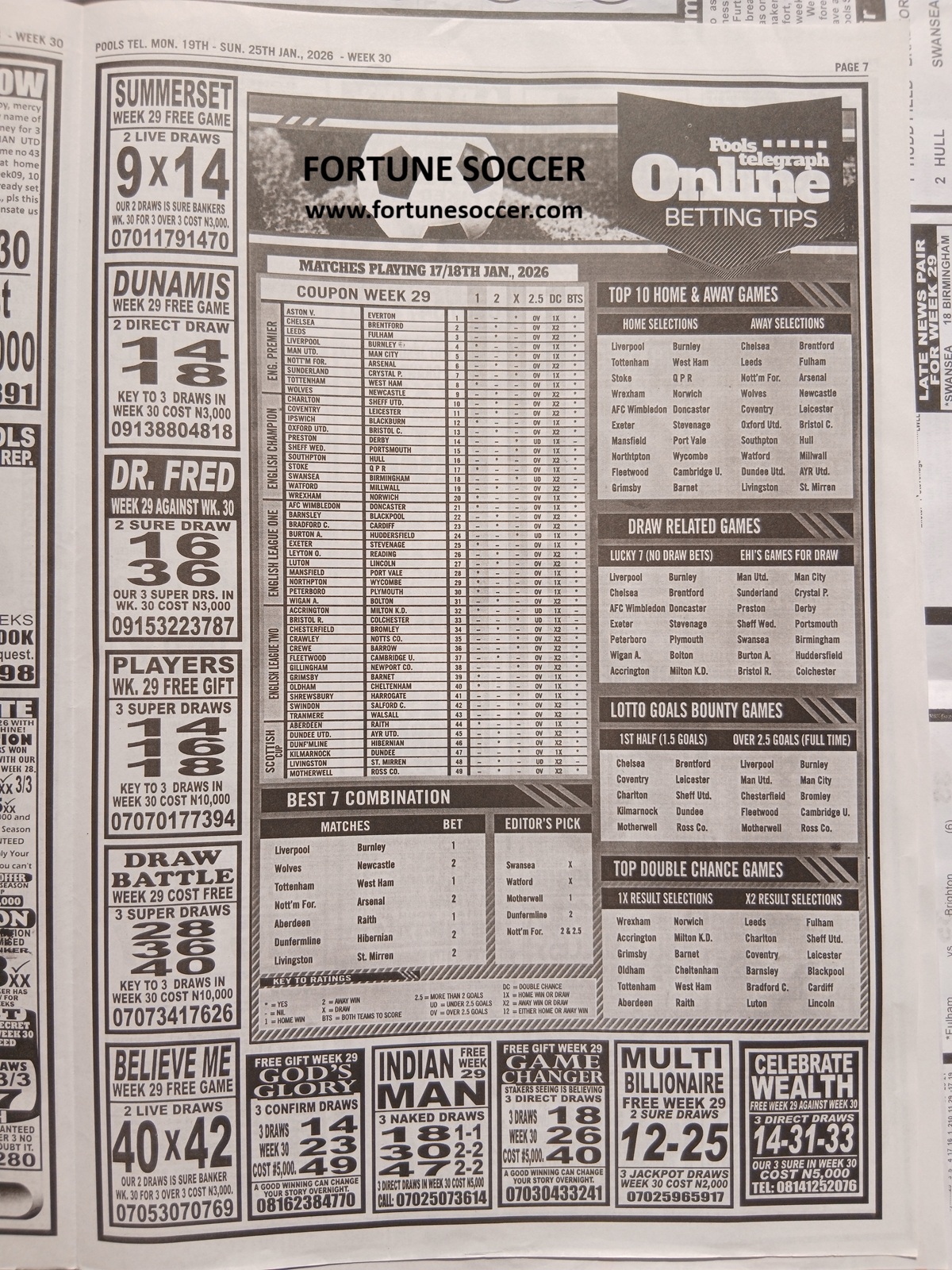 RELATED ARTICLE: Current week 30 Pool Late News Papers 2026 ~ BigWin, Pools Telegraph, Temple of Draws