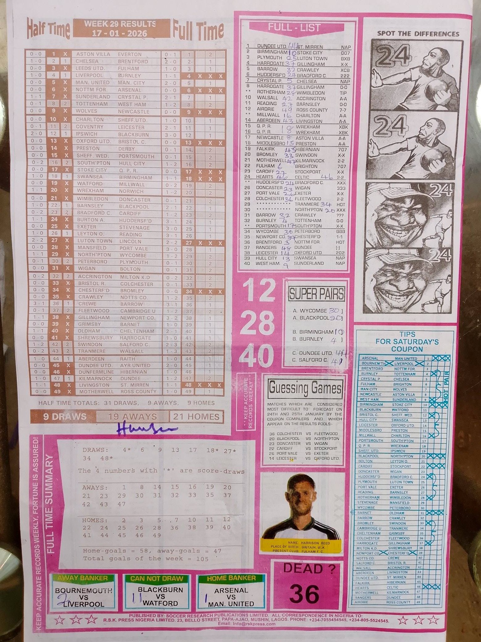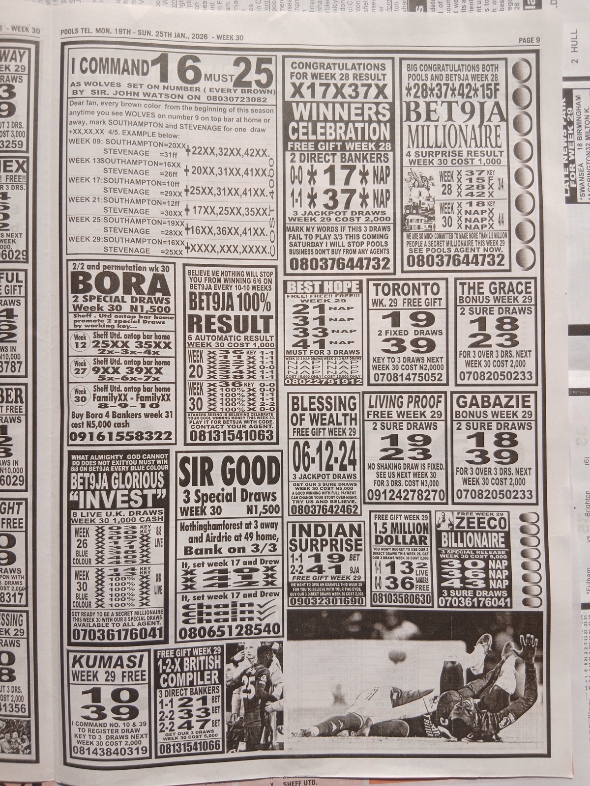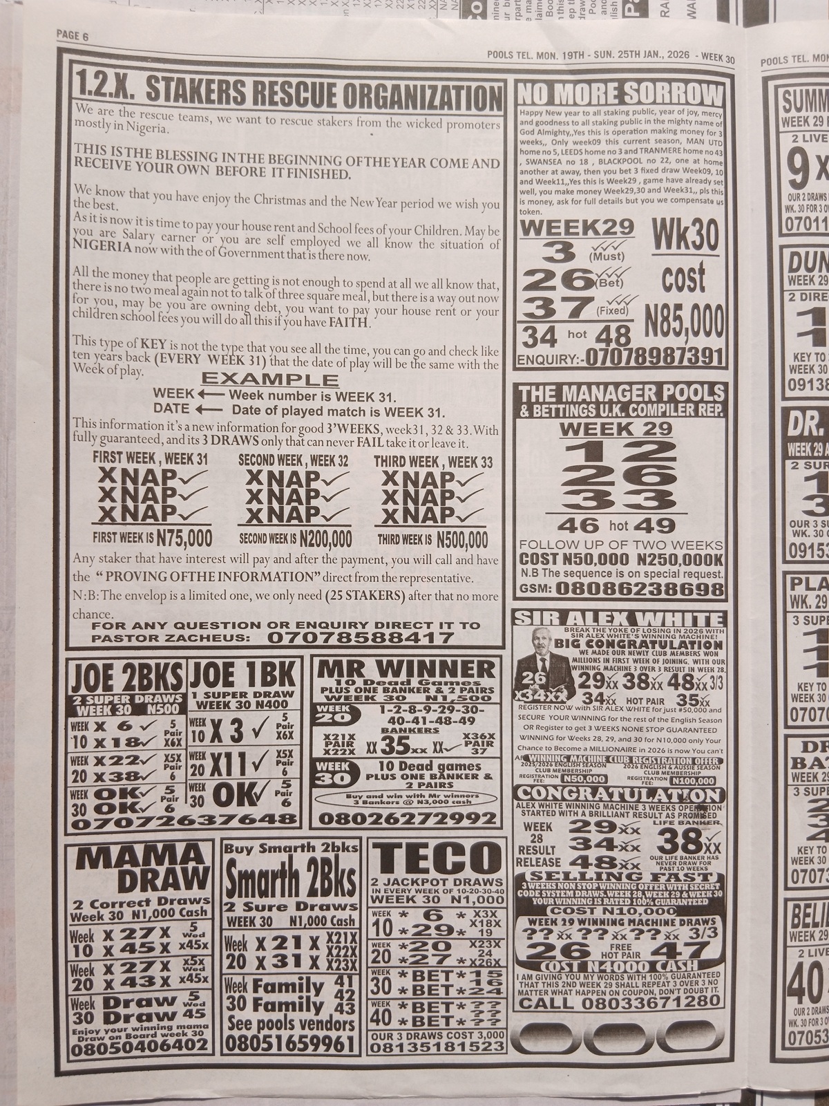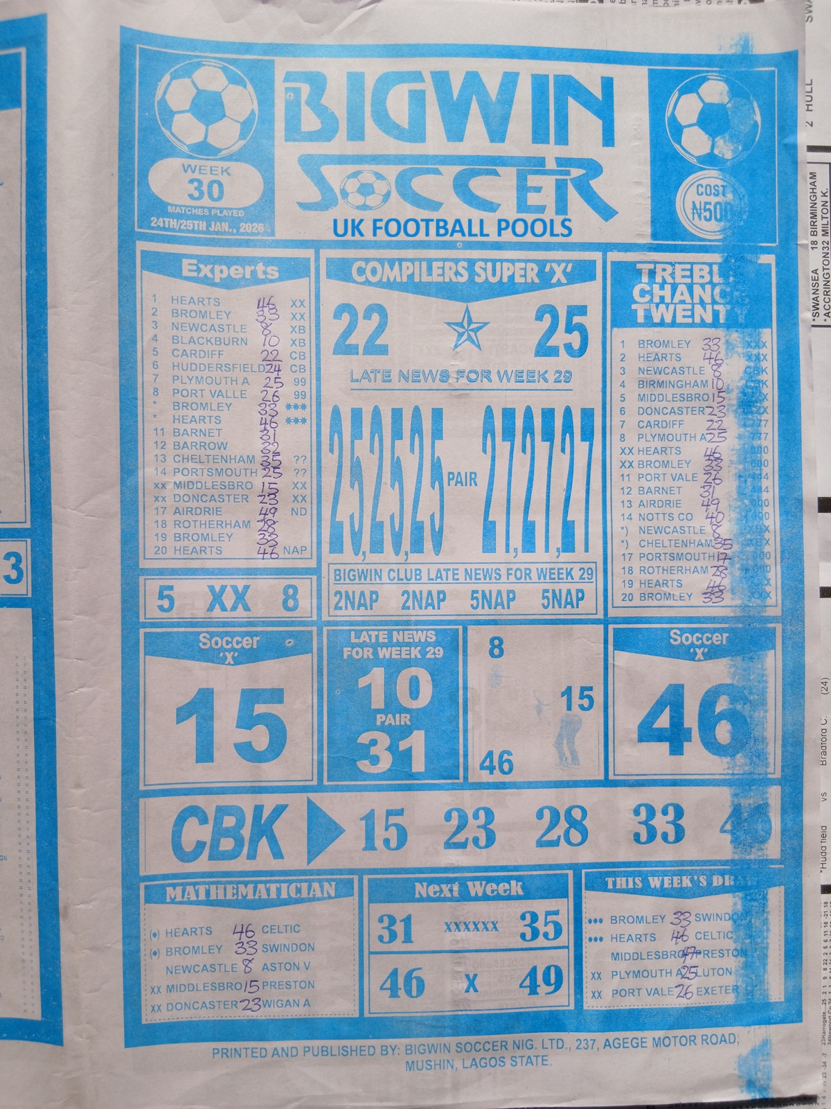 CHECK ALSO: Current Week 30 Pool Late News Papers 2026 ~ Sport Officer, Soccer Standard, Weekly Telegraph