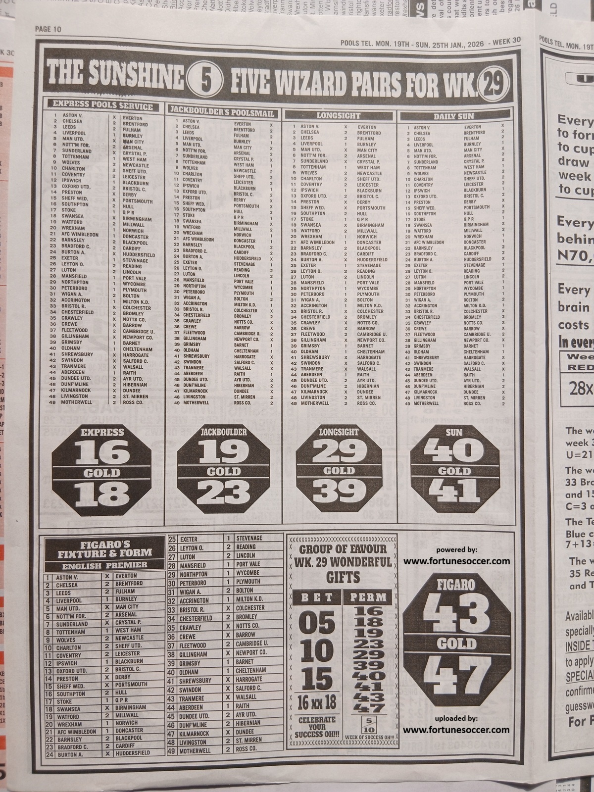 - Current Week 29 Pool Fixtures 2026 For Sat, 17 Jan - UK 2025/2026 Pools